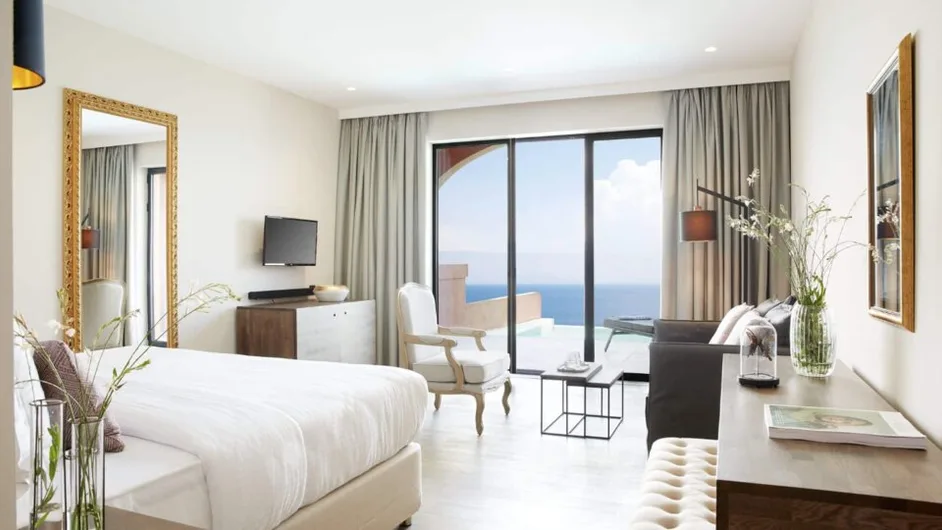 Smeštaj u hotelu čine isključivo apartmani, pažljivo osmišljeni za odrasle goste koji traže mir i udobnost. Većina jedinica je prostrana, sa velikim terasama i direktnim ili bočnim pogledom na more, a deo apartmana ima i privatni bazen ili đakuzi na terasi, što stvara osećaj potpunog luksuza i privatnosti. U zavisnosti od tipa, apartmani su pogodni za 2 do 3 odrasle osobe, sa modernim kupatilima, kvalitetnom posteljinom, bogato opremljenim mini-barom i detaljima koji naglašavaju eleganciju i mediteranski stil.