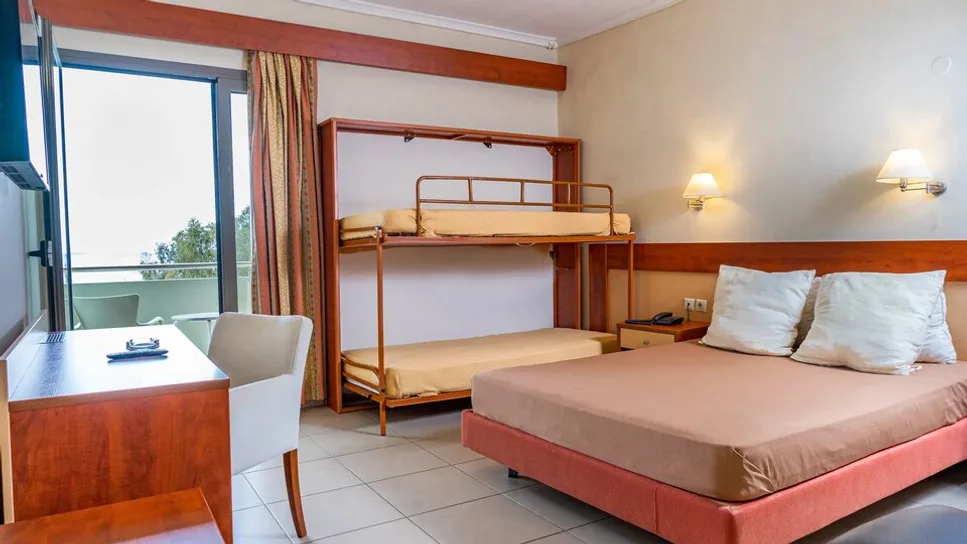 Smeštaj u hotelu čine udobne standardne i porodične sobe, sa pogledom na more, bazen ili zelene padine iznad Marmarija. Ukupno je na raspolaganju oko 100 soba, raspoređenih u glavnoj zgradi, od jednokrevetnih i dvokrevetnih, preko trokrevetnih, do porodičnih soba i većih apartmana koji mogu da ugoste do četiri ili pet osoba. Sve smeštajne jedinice imaju klima-uređaj, sopstveno kupatilo, balkon, televizor, frižider ili mini-bar i bežični internet, što obezbeđuje prijatan boravak i dužim letnjim odmorima.