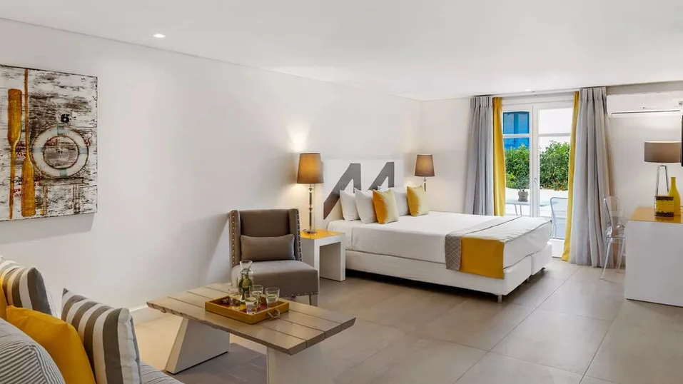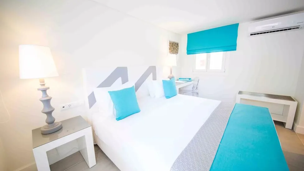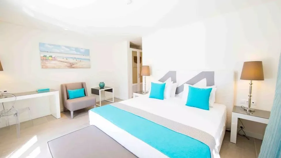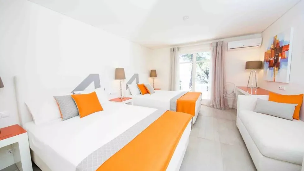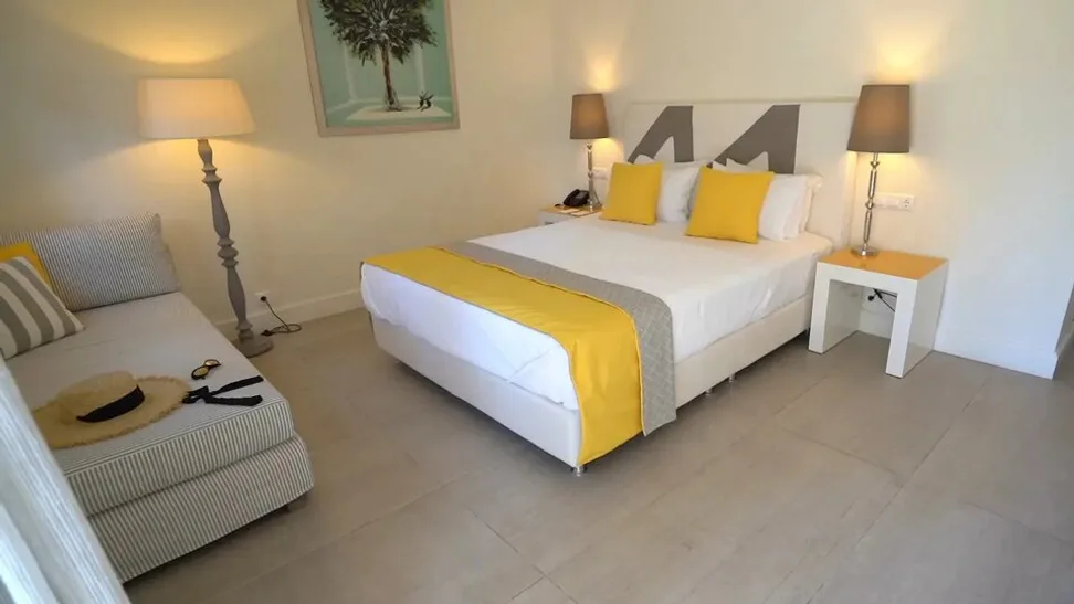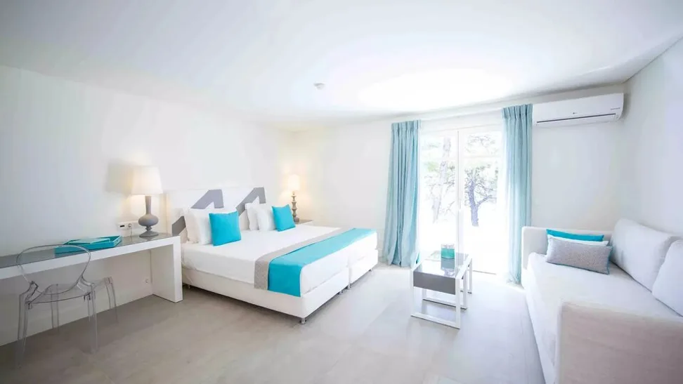 Smeštaj u hotelu čine prijatne sobe i apartmani raspoređeni u niskim zgradama, okruženi zelenilom. Sve jedinice poseduju balkon ili terasu, kupatilo, klima-uređaj, mini-bar i bežični internet. Postoje standardne dvokrevetne sobe, porodične sobe i veći apartmani, što hotel čini idealnim i za parove i za porodice sa decom. Kapacitet većine soba je 2–3 osobe, dok porodične sobe i apartmani mogu udobno da prime roditelje sa jednim ili dvoje dece.