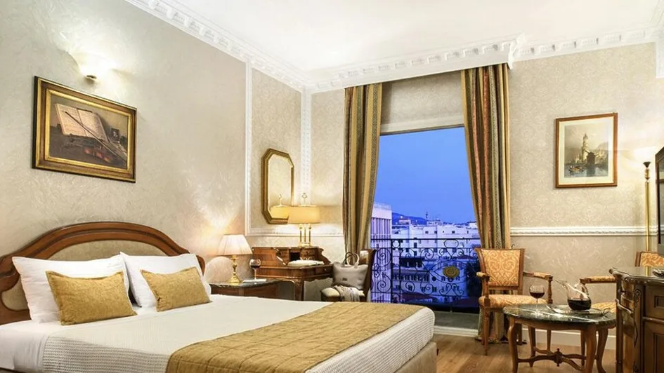 Hotel raspolaže sa ukupno 101 sobom i 17 apartmana, pažljivo uređenih u klasičnom, elegantnom stilu. Sobe su prostrane, sa toplim bojama, drvenim podovima i udobnim krevetima, a mnoge nude impozantan panoramski pogled na more ili na slikovite ulice Ladadike. U ponudi su standardne i premium sobe, kao i različite kategorije apartmana, koji su idealni za duže boravke ili zahtevnije goste. Sve jedinice imaju savremene pogodnosti poput bežičnog interneta, radnog stola, mini-bara i modernih kupatila, što obezbeđuje udoban boravak i odmoru i poslu.