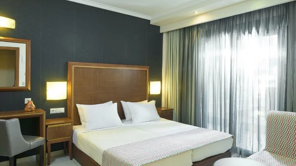 Hotel raspolaže sa 68 soba uređenih u modernom, toplom stilu. Standardne sobe namenjene su za 2–3 osobe, sa mogućnošću dodatnog ležaja za dete, dok prostraniji apartmani nude još više komfora za porodice ili duže boravke. Sve smeštajne jedinice imaju sopstveno kupatilo sa tušem i fenom za kosu, klima-uređaj, frižider, sef, telefon, televizor sa satelitskim kanalima i balkon, što gostima pruža prijatan boravak posle dana provedenog na plaži ili u obilasku okoline.