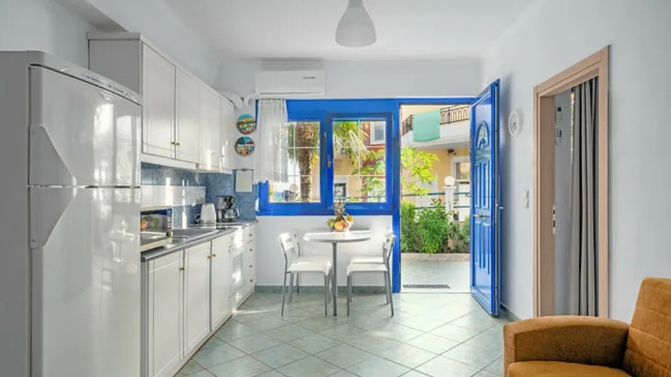 Objekat raspolaže sa oko 20-ak soba i apartmana, različitih tipova – dvokrevetne i trokrevetne sobe, kao i porodični apartmani koji mogu da ugoste od 4 do čak 6–7 osoba, što ga čini odličnim izborom za veće porodice ili društva. Pojedine jedinice imaju opremljenu kuhinju ili kuhinjski ugao, što gostima omogućava dodatnu fleksibilnost tokom boravka. Sve smeštajne jedinice su klimatizovane, sa sopstvenim kupatilom, balkonom ili terasom, a deo soba nudi i lep bočni ili direktan pogled na more.