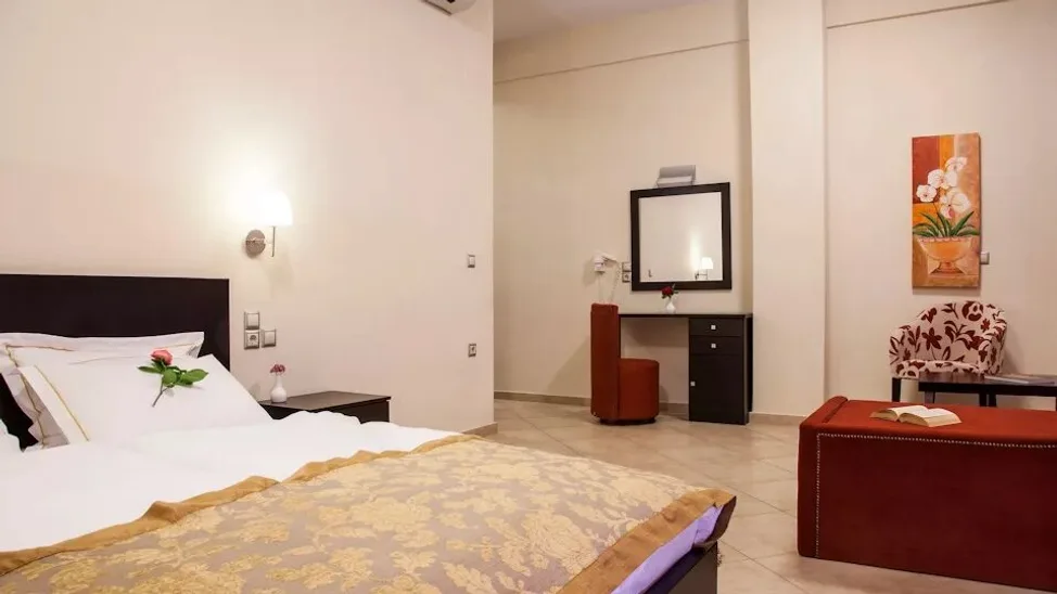 Smeštaj u hotelu Meteoritis organizovan je u moderno opremljenim sobama sa privatnim balkonom, od kojih mnoge nude direktan ili bočni pogled na stene Meteora ili na vrt. Gostima su na raspolaganju dvokrevetne i trokrevetne sobe, kao i porodični apartmani, idealni za smeštaj roditelja sa decom. Sve jedinice imaju klima-uređaj, frižider, sef, televizor sa satelitskim kanalima, kupatilo sa fenom i toaletnim priborom, što obezbeđuje udoban boravak i posle celodnevnog razgledanja.