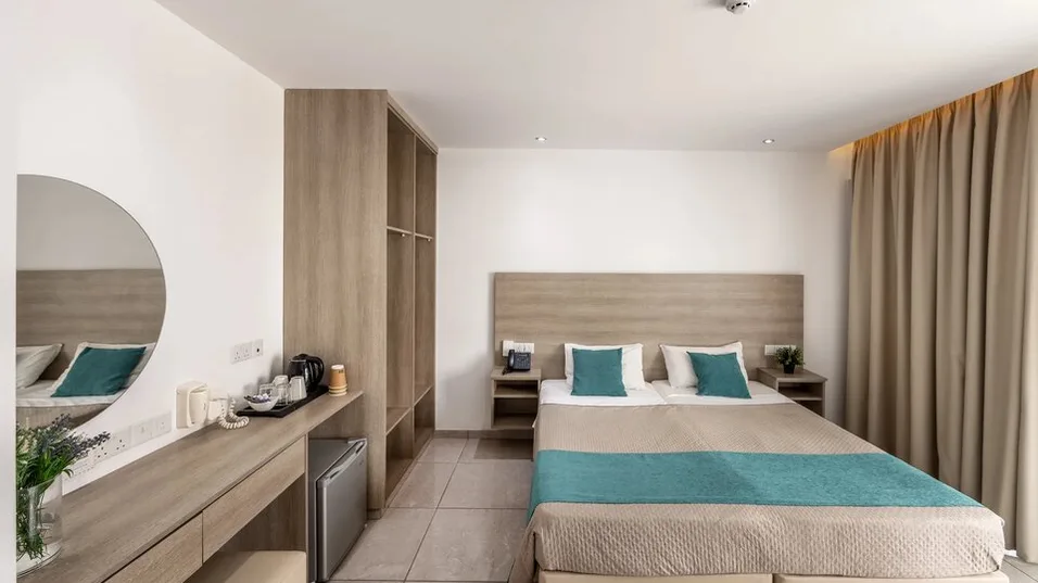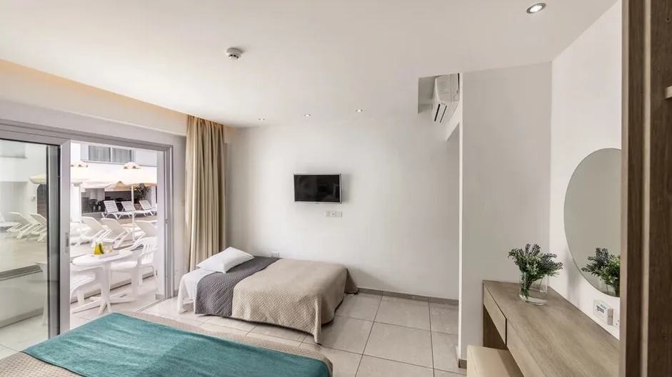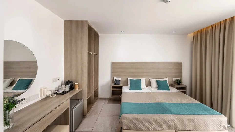 Hotel raspolaže sa ukupno 84 sobe, uređenih u modernom, svetlom stilu. Sve smeštajne jedinice su klimatizovane i opremljene televizorom sa ravnim ekranom, mini frižiderom, kuvalom za vodu, sefom, kao i kupatilom sa tušem i fenom za kosu. Većina soba ima balkon sa pogledom na bazen ili unutrašnjost letovališta, dok su kapaciteti prilagođeni parovima, prijateljima ili manjim porodicama, sa mogućnošću dodavanja dečjeg kreveca za najmlađe na upit.