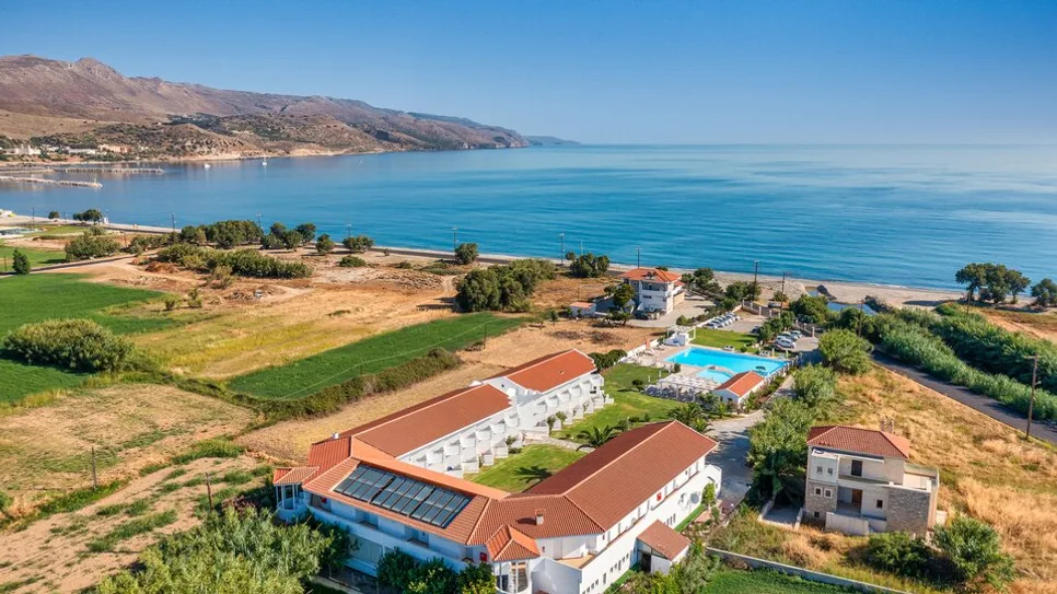 Hotel nudi lepo uređeno spoljašnje bazensko područje sa ležaljkama i suncobranima, dok se na obližnjoj organizovanoj plaži mogu koristiti ležaljke i suncobrani uz doplatu ili u sklopu određenih paketa. Tu je bar pored bazena za osvežavajuće koktele i lagane obroke, kao i restoran sa jelovnikom koji poslužuje specijalitete kritske i mediteranske kuhinje. Gostima su na raspolaganju recepcija, besplatan parking, bežični internet u zajedničkim prostorijama i wifi u sobama, mogućnost masaža i izleta, kao i lekar na poziv.