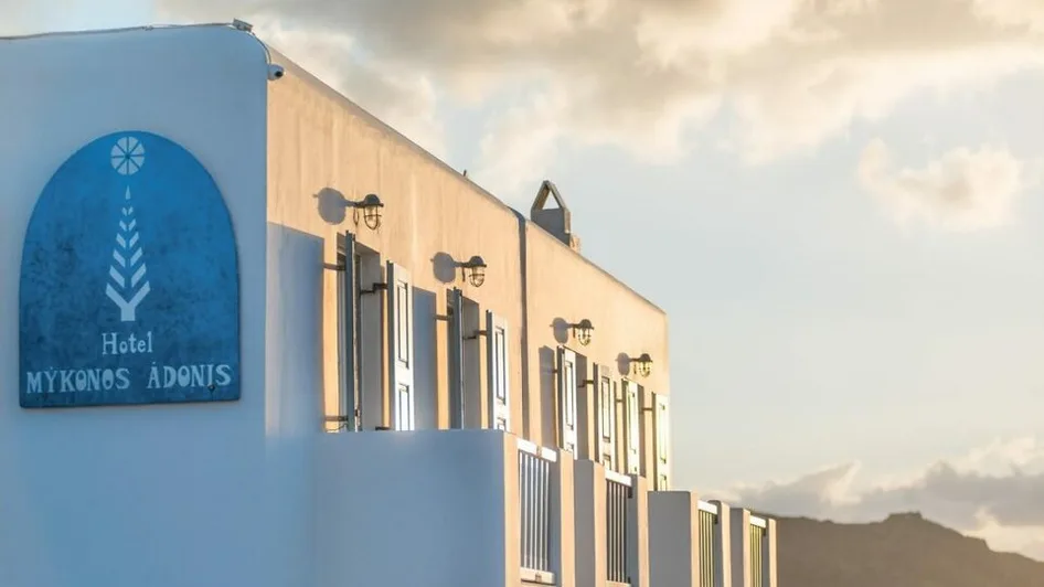 Hotel Mykonos Adonis nalazi se na odličnoj lokaciji, na rubu grada Mykonosa, u srcu Kiklada u Grčkoj. Smešten je na blagom uzvišenju sa koga se pruža lep pogled na more i vetrenjače, na svega oko 2 minuta hoda od plaže Megali Ammos, poznate po zlatnom pesku i kristalno čistoj vodi. Do centralnog dela grada, uskih uličica sa tradicionalnim tavernama, buticima i barovima, stiže se za oko pet minuta lagane šetnje, dok je autobuska stanica u neposrednoj blizini, što omogućava lako istraživanje ostalih plaža na ostrvu. Aerodrom Mykonos je na kratkoj vožnji automobilom, pa je transfer jednostavan i brz.
