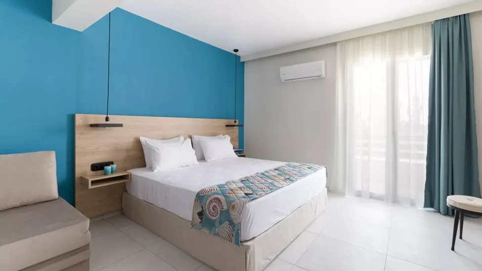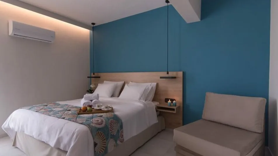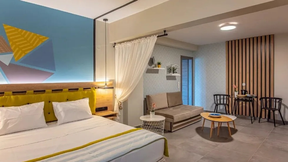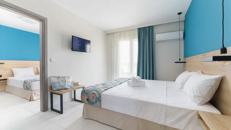 Smeštaj u hotelu Mythic Summer organizovan je u moderno uređenim sobama i apartmanima, raspoređenim u niskim zgradama sa dva sprata. Gostima su na raspolaganju standardne dvokrevetne sobe, porodične sobe i veći apartmani, kao i deo jedinica sa privatnim bazenima u prizemlju, idealni za goste koji traže dodatnu dozu luksuza i privatnosti. Ukupno ima oko 46 smeštajnih jedinica, sa kapacitetom za parove, porodice sa jednim ili dvoje dece, ali i manje grupe prijatelja. Sve sobe su klimatizovane, imaju balkon ili terasu sa pogledom na Olimp ili baštu (osim potkrovnih jedinica), kupatilo sa tušem, televizor sa satelitskim kanalima, frižider, sef i bežični internet. ([hotels.com](https://www.hotels.com/ho696593632/mythic-summer-hotel-katerini-greece/?utm_source=openai))