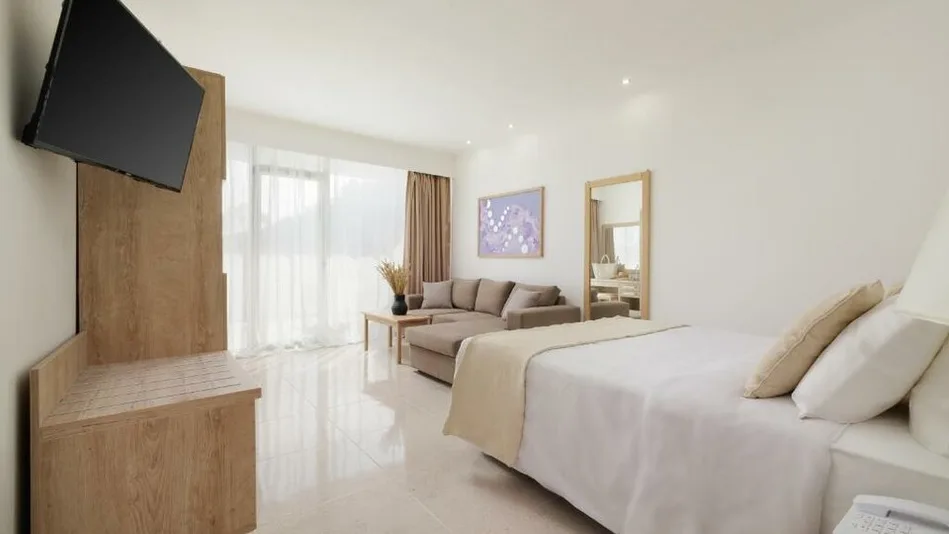 Hotel nudi savremeno uređene smeštajne jedinice različitih tipova, od udobnih standardnih soba do prostranijih apartmana, namenjenih zahtevnijim gostima. Sve sobe su klimatizovane, sa balkonom ili terasom, modernim kupatilom i funkcionalnim nameštajem, stvarajući prijatan ambijent za odmor posle dana provedenog na plaži ili u obilasku ostrva. Porodice i parovi mogu da biraju između različitih kapaciteta, a pojedine jedinice nude i još veći komfor za duži boravak.