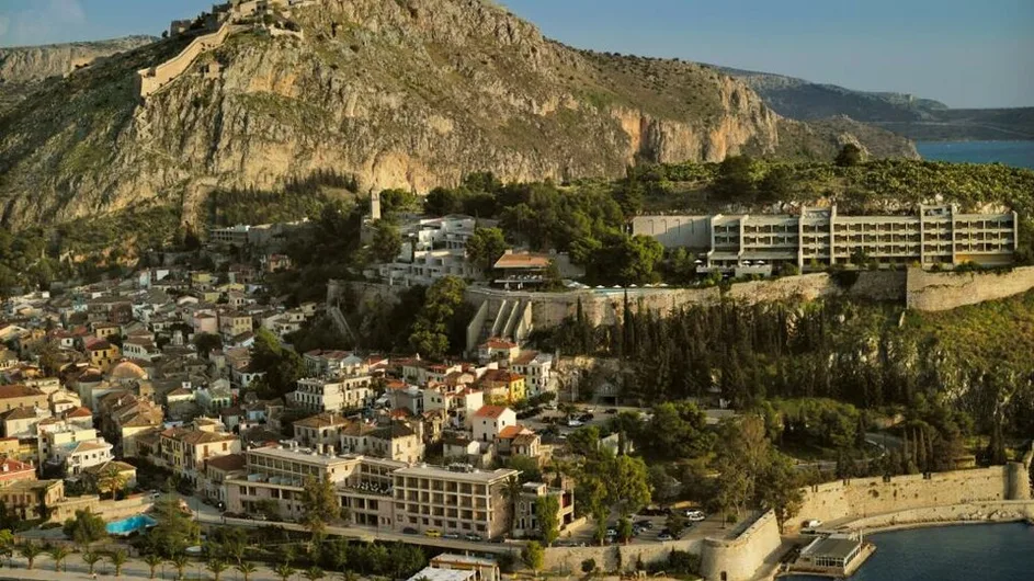 Nafplia Palace je luksuzni hotel kategorije 5 zvezdica, smešten na vrhu brda Akronafplija, iznad starog grada Nafplija, jednog od najromantičnijih gradova na Peloponezu u Grčkoj. Zahvaljujući izuzetnoj poziciji, hotel pruža panoramski pogled na zaliv Argolida, ostrvce Bourtzi i krovove starog grada. Do živopisnog centra Nafplija, sa tavernama, kafićima i buticima, stiže se za svega nekoliko minuta liftom kroz stenu ili kratkom šetnjom, dok je javna plaža na dohvat ruke, što ovaj hotel čini idealnom bazom za istraživanje regiona Peloponeza u Grčkoj.