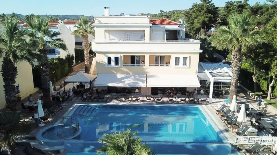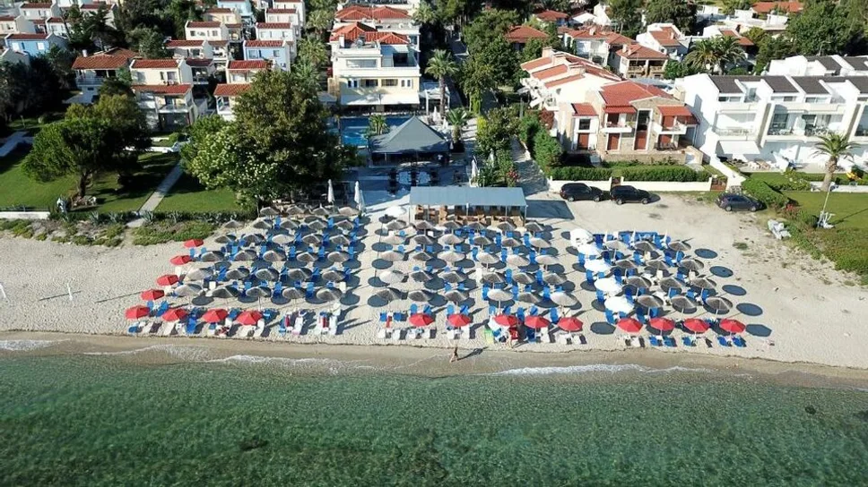 Gostima su na raspolaganju dva bazena – veći za odrasle i dečji bazen, okruženi ležaljkama i suncobranima. Hotel nudi organizovanu plažu ispred objekta, gde se uz doplatu koriste ležaljke i suncobrani, kao i mogućnosti za sportove na vodi. Bar i restoran pored plaže i bazena služe bogat doručak na bazi švedskog stola, lagane obroke, grčka jela i osvežavajuća pića tokom celog dana. Za najmlađe goste tu su dečje igralište i plići deo bazena, a u večernjim satima povremeno se organizuje animacija.