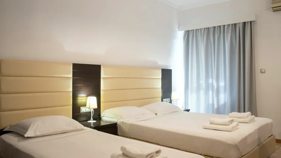 Smeštajne jedinice u hotelu su uređene jednostavno i funkcionalno, sa akcentom na udobnost i čistoću. Gostima su na raspolaganju standardne dvokrevetne i trokrevetne sobe, kao i porodične opcije koje mogu ugostiti roditelje sa jednim ili dvoje dece. Većina soba ima balkon sa pogledom na more ili planinu Olimp, klima-uređaj, frižider i savremeno opremljeno kupatilo. Zahvaljujući ovakvoj strukturi, hotel je podjednako pogodan za parove, manje grupe prijatelja i porodice koje traže funkcionalan, ali prijatan smeštaj u blizini plaže.