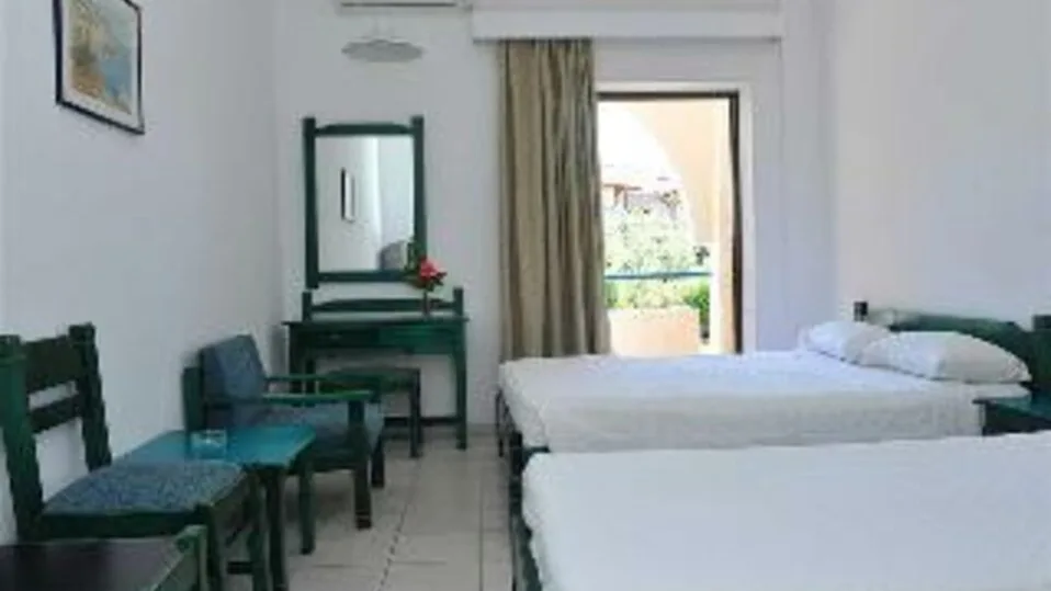 Hotelski kompleks funkcioniše kao malo turističko naselje, sastavljeno od niskih stambenih zgrada u mediteranskom stilu. Sobe su jednostavno uređene, ali udobne, sa svim osnovnim pogodnostima za bezbrižan boravak. Na raspolaganju su dvokrevetne i trokrevetne sobe, kao i praktične porodične jedinice koje mogu da ugoste roditelje sa jednim ili dvoje dece, pa je kapacitet hotela prilagođen i parovima i manjim porodicama. Većina soba ima balkon ili terasu sa pogledom na vrt, što dodatno doprinosi osećaju mira i boravka u prirodi.