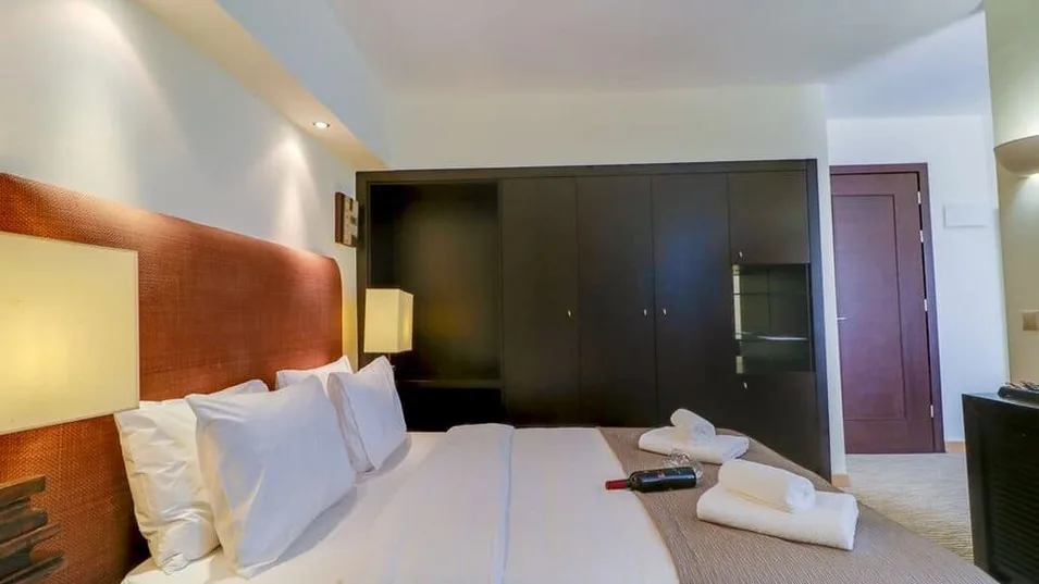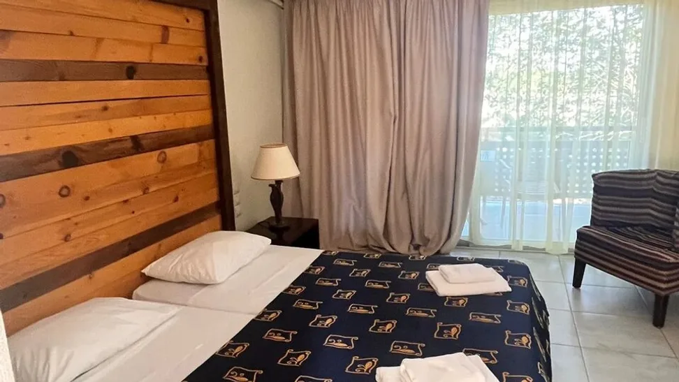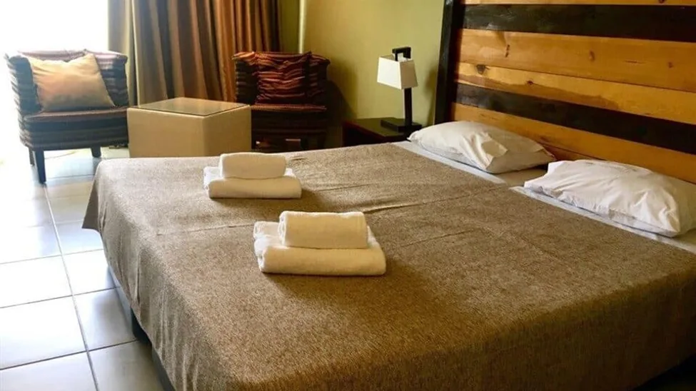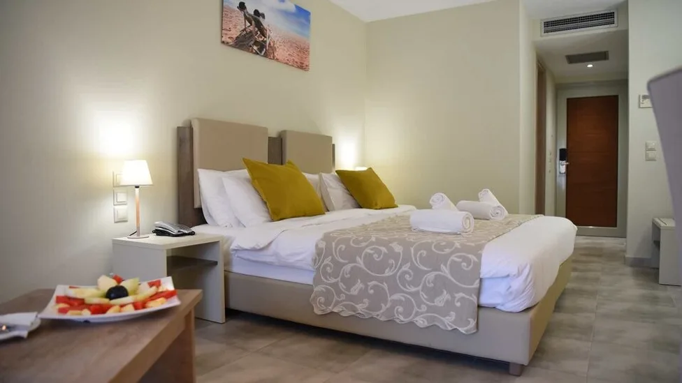 Kompleks čine glavna hotelska zgrada i bungalovi raspoređeni u lepo uređenom vrtu. Na raspolaganju su standardne dvokrevetne sobe, porodične sobe i komforni apartmani, većinom sa balkonom ili terasom i pogledom na more, bazen ili baštu. Ukupan kapacitet je oko 270 smeštajnih jedinica, što omogućava dobar izbor za parove, porodice sa decom i veća društva. Sve jedinice su klimatizovane i opremljene modernim sadržajima – televizorom, frižiderom, sefom, kupatilom sa fenom i bežičnim internetom.