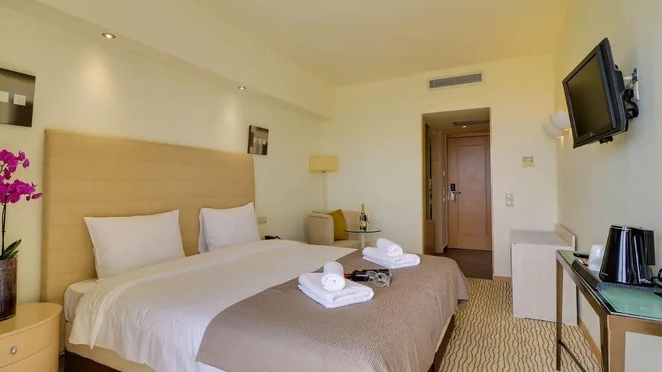 Olympian Bay Grand Resort je prostran kompleks sa 4 zvezdice, smešten u podnožju Olimpa, direktno na dugoj peščano-šljunkovitoj plaži Leptokarije. Udaljen je oko 1 km od centra Leptokarije, do kojeg vodi šetalište uz more, dok je aerodrom „Makedonija” u Solunu na približno 110–120 km, što ga čini lako dostupnim za goste koji dolaze avionom. Okružen je bujnim zelenilom i pogledima na more i planinu, pa spaja osećaj morskog letovališta i planinskog predela u srcu Olimpske rivijere u Grčkoj.