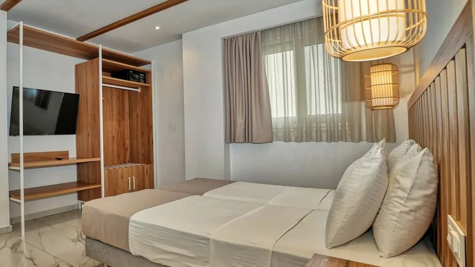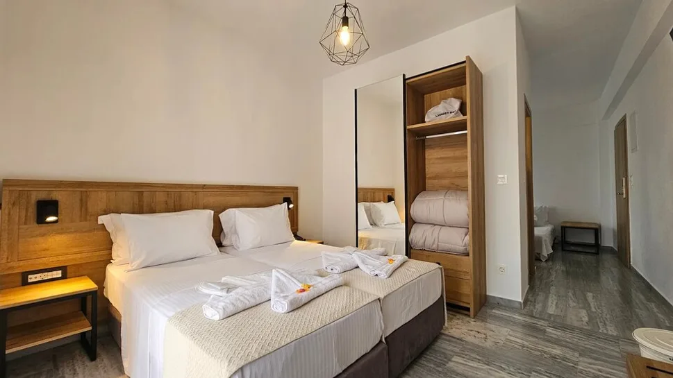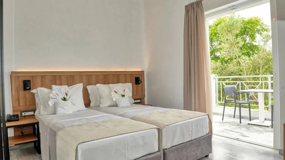 Objekat raspolaže sa ukupno 83 smeštajne jedinice, raspoređene u glavnoj zgradi i bungalovima-vilama u vrtu. U ponudi su dvokrevetne, trokrevetne i porodične sobe, kao i prostraniji apartmani u bungalovima, idealni za porodice sa dvoje dece. Sve smeštajne jedinice imaju balkon ili terasu, kupatilo, klima-uređaj, televizor, telefon i frižider, dok pojedini porodični bungalovi nude i malu kuhinjsku nišu. Sobe su jednostavno, ali moderno uređene, sa naglaskom na udobnost i funkcionalnost.