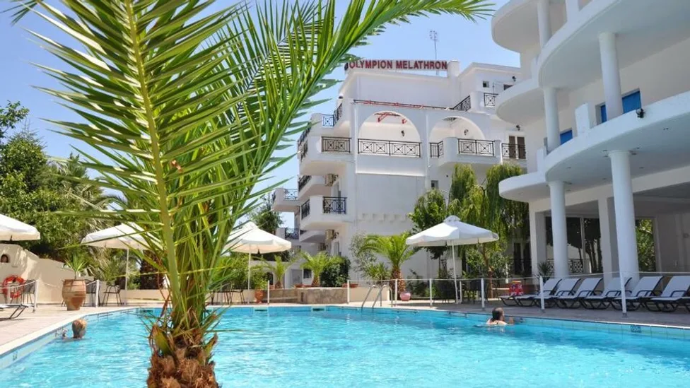 Hotel Olympion Melathron je prijatan objekat sa 4 zvezdice, smešten u mirnom delu mesta Platamonas, u podnožju Olimpa, u centralnoj Makedoniji u Grčkoj. Nalazi se na oko 100 m od peščane plaže Neoi Poroi, do koje se stiže kratkom šetnjom, dok je živopisna luka i centar Platamonasa udaljen oko 1,5 km. Gostima su na raspolaganju prodavnice, taverne i barovi u blizini hotela, a međunarodni aerodrom u Solunu nalazi se na približno 130 km, što ga čini pogodnim za organizovane transfere i individualna putovanja.