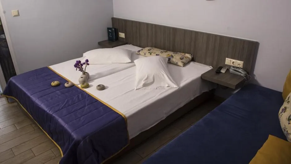 Smeštaj u hotelu Olympos organizovan je u udobnim dvokrevetnim i trokrevetnim sobama, kao i u praktičnim porodičnim sobama i apartmanima u susednom objektu Olympos Suites. Sve jedinice imaju klima-uređaj, sopstveno kupatilo, balkon, televizor i bežični internet. Standardne sobe su pogodne za parove ili manje porodice, dok apartmani, sa odvojenom spavaćom sobom i dnevnim delom, mogu da prime do četiri osobe, što ih čini odličnim izborom za porodice sa decom ili društvo prijatelja koje želi više prostora i privatnosti.