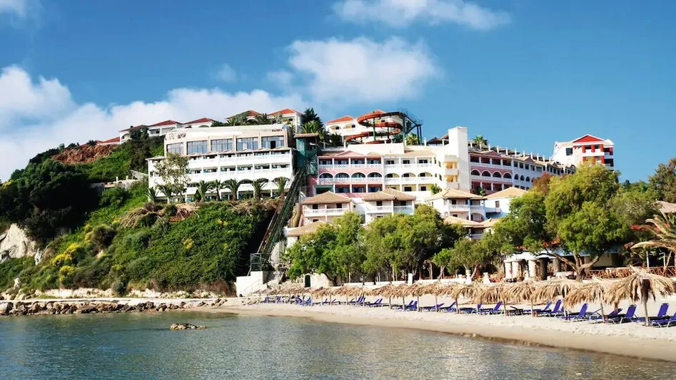 Hotel Palazzo Di Zante je elegantan kompleks sa 4 zvezdice, smešten na zelenom brežuljku iznad čuvene peščane plaže Mavratsis, u mirnom mestu Vasilikos na ostrvu Zakintos, u Grčkoj. Do centra mesta Vasilikos ima oko 800 m, dok su življi Argasi i grad Zakintos sa šetalištima, tavernama i prodavnicama udaljeni približno 10, odnosno 15 km. Aerodrom na Zakintosu nalazi se na oko 17 km od hotela, što obezbeđuje relativno brz transfer, ali dovoljan mir za opuštajući odmor. Do lepe, organizovane plaže ispod hotela gosti stižu liftom ili stepenicama, gde ih čekaju ležaljke i suncobrani.