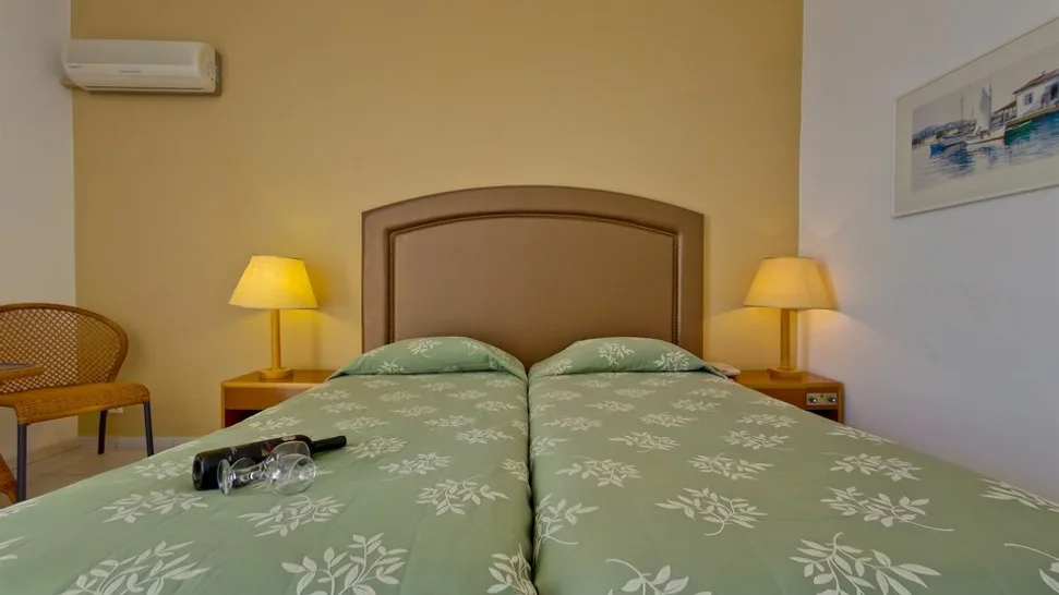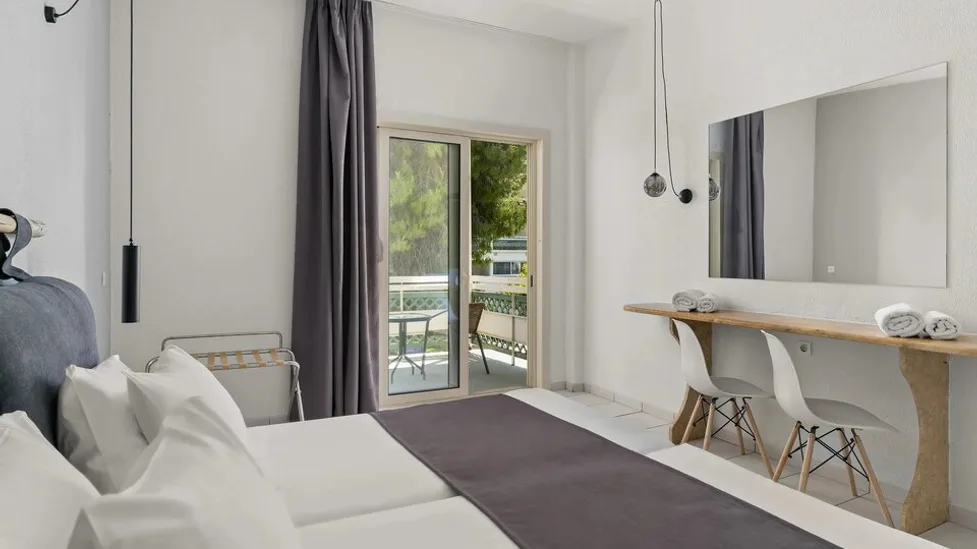 Hotel raspolaže raznovrsnim smeštajnim jedinicama, od standardnih dvokrevetnih soba sa pogledom na baštu ili more, do porodičnih soba sa krevetima na sprat i bungalova u zelenilu. Sobe su klimatizovane, imaju televizor, frižider, sef i balkon ili terasu, a porodične opcije su prilagođene boravku do četiri osobe. Ukupan kapacitet je organizovan tako da obezbedi dovoljno privatnosti, pa su i veće grupe i porodice smeštene komforno, dok su bungalovi idealni za goste koji žele mirniji ambijent izdvojen od glavne zgrade.