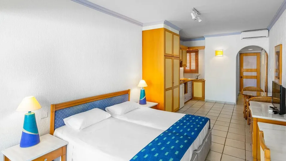 Kompleks nudi kombinaciju hotelskog i apartmanskog smeštaja, sa ukupno oko 200 soba i apartmana. Standardne dvokrevetne sobe namenjene su za boravak 2–3 osobe, dok prostraniji apartmani mogu da ugoste porodice sa dvoje ili troje dece. Sve smeštajne jedinice imaju balkon ili terasu sa pogledom na bazen ili zelene bašte, klima-uređaj, kupatilo, televizor i telefon, dok apartmani dodatno raspolažu čajnom kuhinjom, što ih čini praktičnim izborom za duže boravke i goste koji vole samostalnu pripremu obroka.