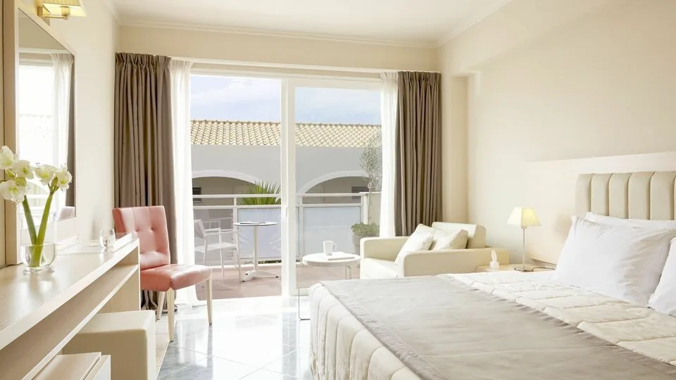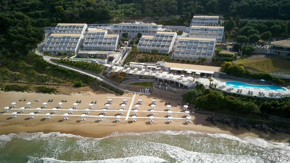 Sa kategorizacijom od 5 zvezdica, Pelekas Monastery odiše elegantnom, ali opuštenom mediteranskom atmosferom. Kombinacija modernog dizajna, prirodnog okruženja i direktnog izlaza na peščanu plažu stvara idealno okruženje za romantičan odmor u dvoje, ali i za porodični odmor sa decom zahvaljujući brojnim sadržajima za najmlađe. Mirna lokacija, kvalitetna usluga i mogućnost organizacije manjih poslovnih susreta čine ovaj hotel dobrim izborom i za goste koji žele da spoje posao i relaksaciju u prelepom ambijentu Krfa, u Grčkoj. ([open-greece.com](https://open-greece.com/hotels/tproduct/434845998-624018513971-pelekas-monastery-5?utm_source=openai))