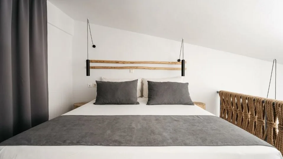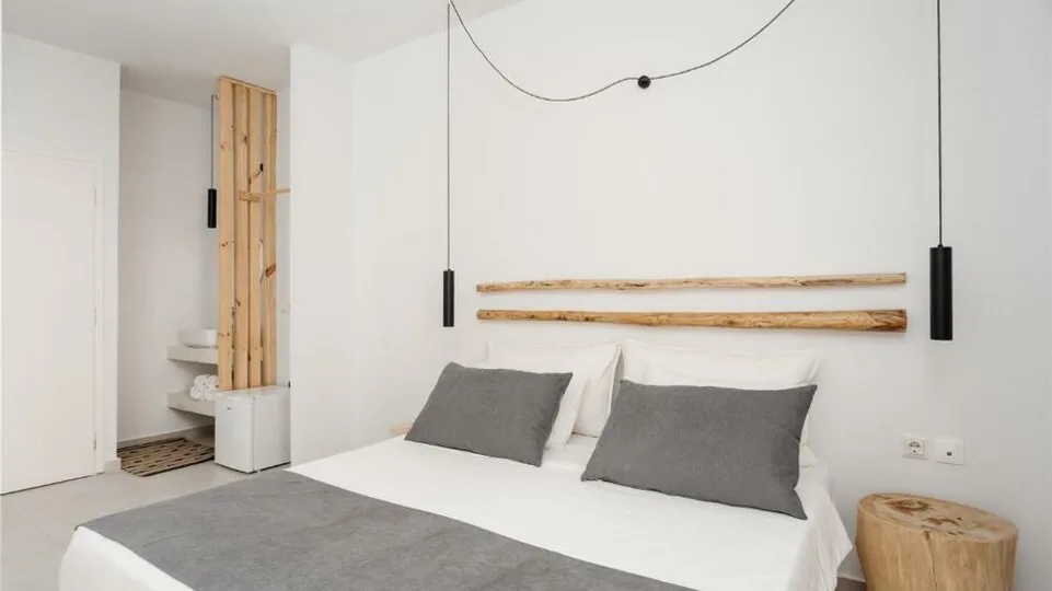 Hotel nudi moderno uređene dvokrevetne sobe, studije i porodične mezonete, mnoge sa direktnim ili bočnim pogledom na more. Sobe su elegantno dekorisane u svetlim tonovima, opremljene klima-uređajem, frižiderom, sefom i balkonom ili terasom, što ih čini udobnim izborom i za kraći i za duži boravak. Porodične jedinice u dupleks rasporedu pružaju odvojen prostor za roditelje i decu, pa su idealne kao porodične sobe za smeštaj 3–4 osobe.