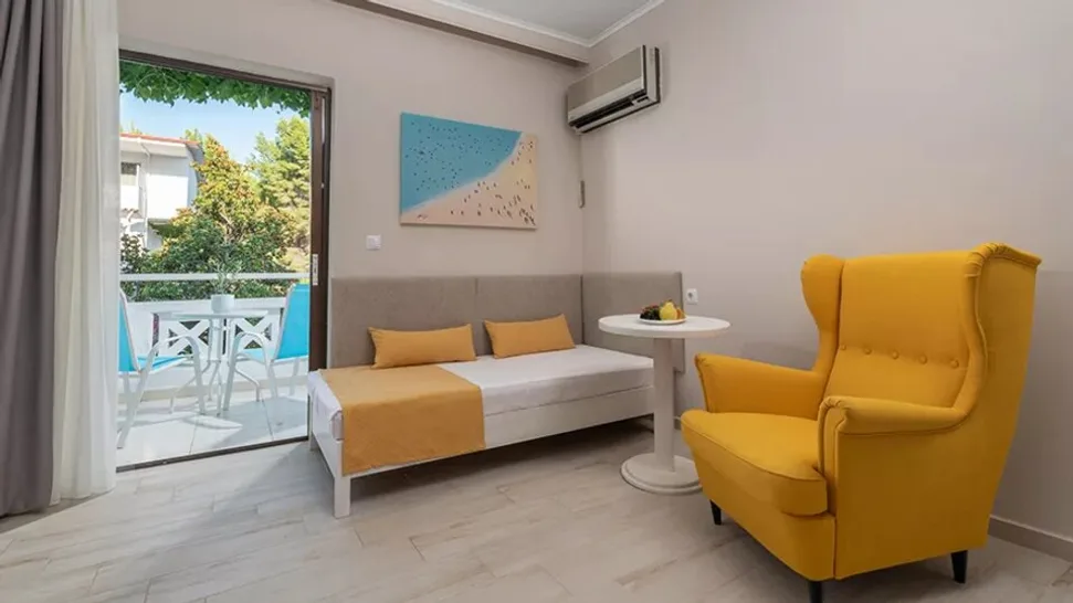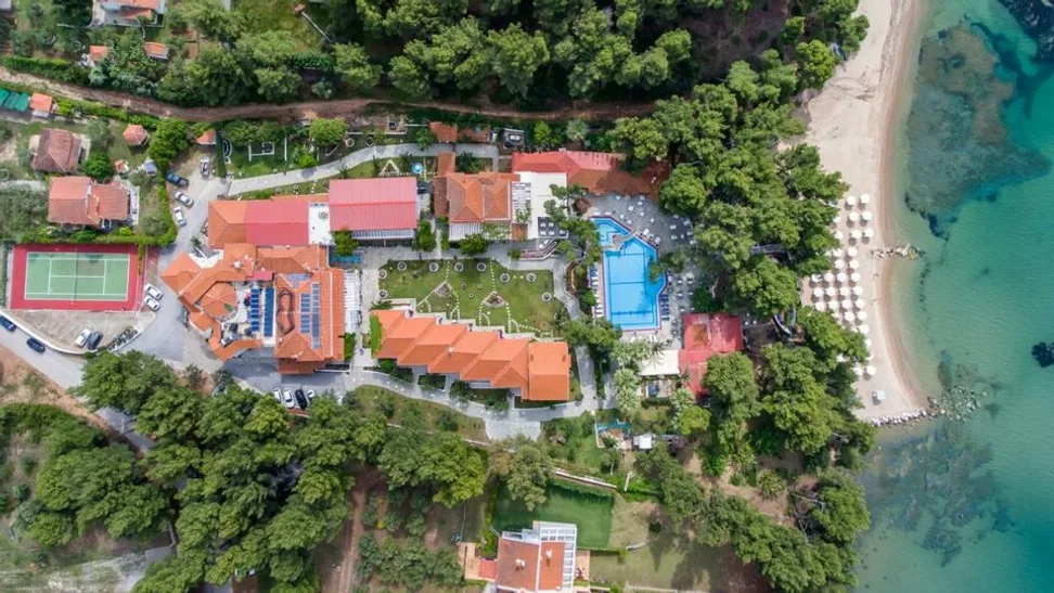 Hotel Porfi Beach je prijatan porodični hotel sa 3 zvezdice, smešten na mirnoj lokaciji između Nikitija i Metamorfozisa, na Sitoniji, na Halkidikiju, u Grčkoj. Nalazi se neposredno uz lepu peščanu uvalu Makrija Lagada, sa dugom, urednom plažom i borovom šumom koja pruža prirodnu hladovinu. Hotel ima direktan izlaz na more, praktično na samoj plaži, dok je centar Nikitija udaljen oko 3,5 km, a tradicionalno selo Metamorfozis oko 2,5 km, pa gosti lako mogu da kombinuju miran odmor i šetnje živopisnim mestima. Aerodrom u Solunu udaljen je približno 85 km od hotela, što ovu destinaciju čini lako dostupnom za porodična letovanja.