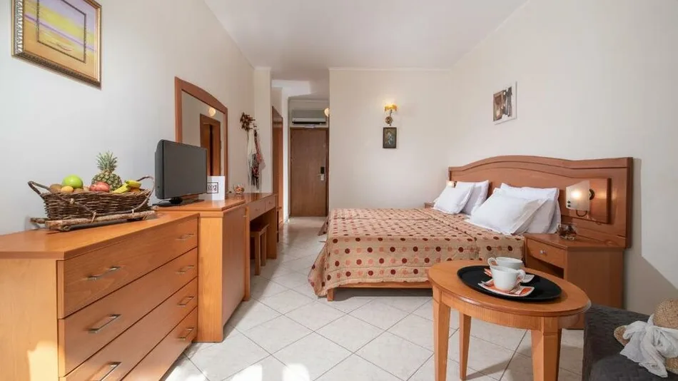 Porfi Beach raspolaže sa oko 87 soba, raspoređenih u nekoliko zgrada okruženih zelenilom. Standardne sobe namenjene su za 2–4 osobe, sa pogledom na vrt ili maslinjak, dok su superior sobe prostranije i udobnije, često sa dodatnom sofom na razvlačenje. Porodične sobe i apartmani nude odvojene spavaće i dnevne prostore, kao i jedno ili dva kupatila, pa su idealni za veće porodice ili goste koji žele više komfora. Sve smeštajne jedinice imaju klima-uređaj, balkon ili terasu, kupatilo sa fenom, frižider ili mini-bar, telefon i televizor sa satelitskim kanalima, što obezbeđuje ugodan boravak i dužim gostovanjima.