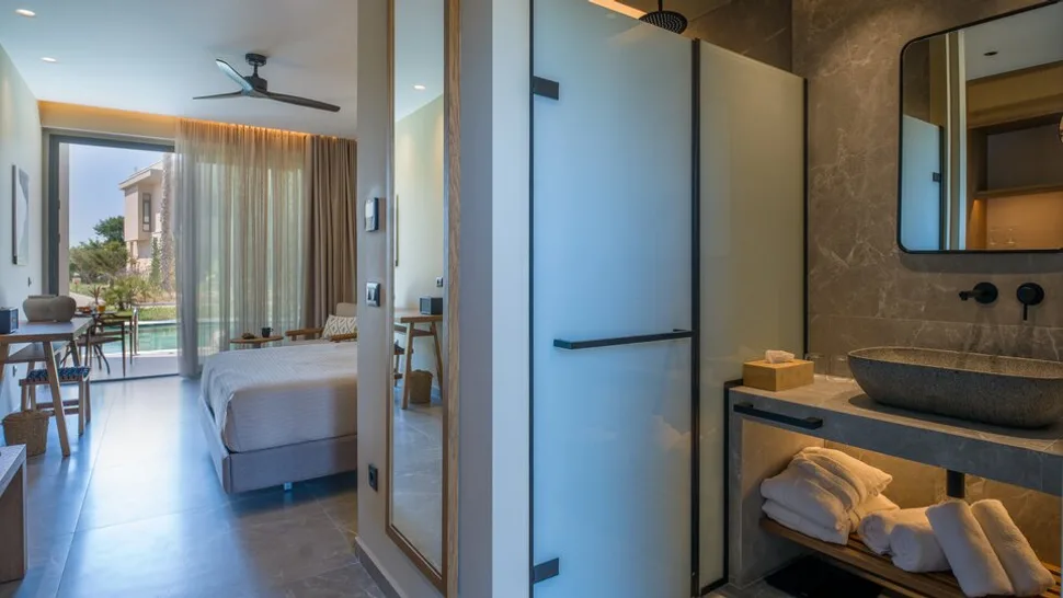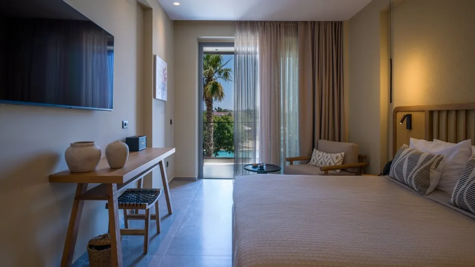 Hotel raspolaže sa oko 75 soba, uređenih u modernom, boho stilu, u smirujućim zemljanim tonovima. Gostima su na raspolaganju standardne dvokrevetne sobe, sobe sa pogledom na bazen, kao i apartmani sa delimično zajedničkim bazenom ili sopstvenim privatnim bazenom, idealni za dodatnu privatnost i luksuz. Sve smeštajne jedinice imaju moderno opremljena kupatila sa tuš kabinom, klima-uređaj, sef, balkon ili terasu, a kapacitet je prilagođen boravku dve odrasle osobe, u skladu sa konceptom hotela namenjenog odraslima.