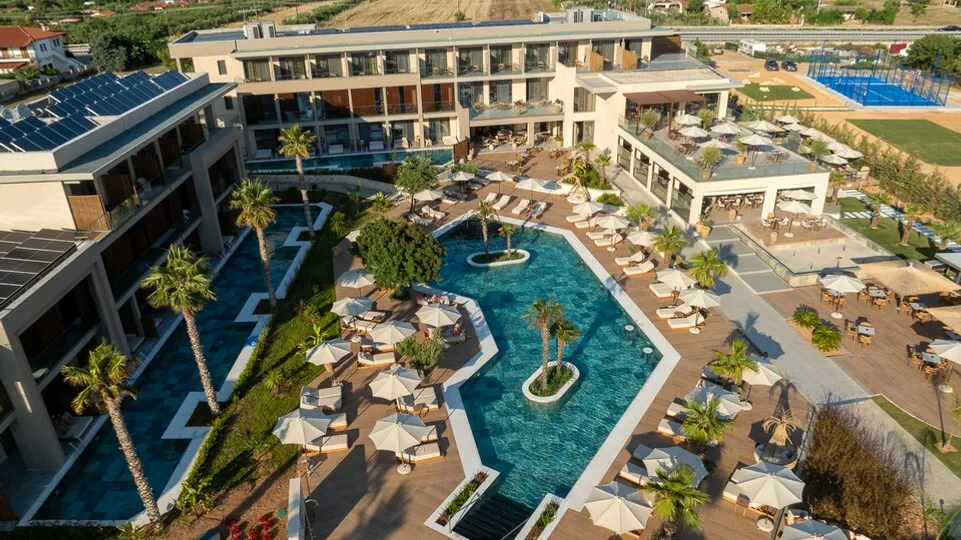 Atmosfera u hotelu je mirna, sofisticirana i opuštajuća, sa naglaskom na prirodne materijale, zemljane boje i elegantan dizajn koji stvara osećaj privatnog utočišta. Ovaj hotelski kompleks je idealan za parove koji traže romantičan odmor, kao i za individualne putnike koji žele kombinaciju luksuza, tišine i blizine mora, daleko od gužve porodičnih rizorta. Portes Theros je savršen izbor za goste koji žele da upoznaju Halkidiki, a da se istovremeno vrate u intiman, udoban i stilizovan ambijent.