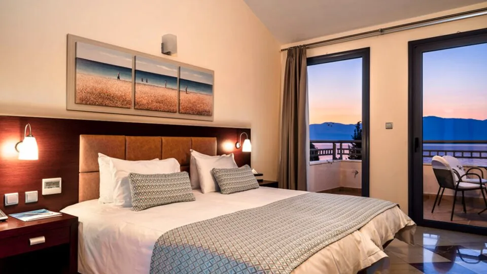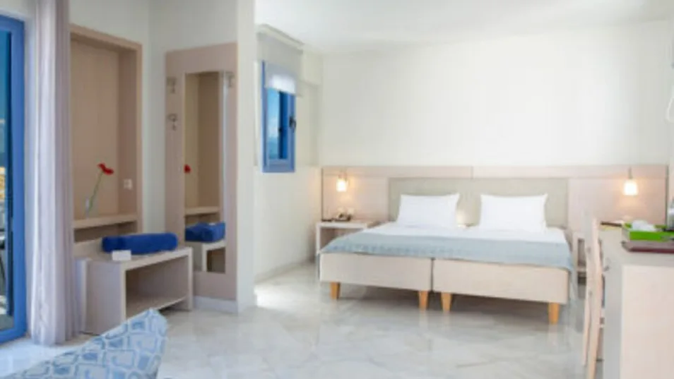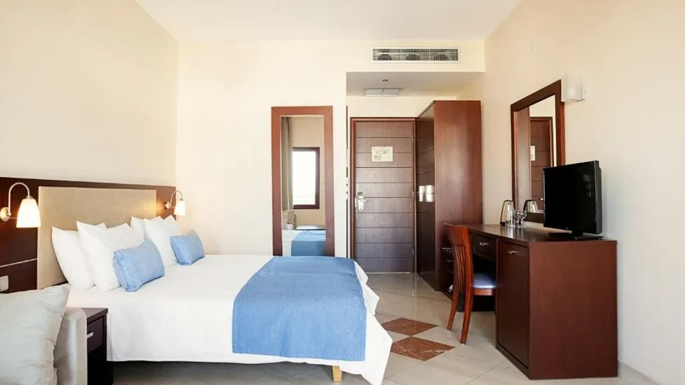 Hotel raspolaže sa oko 140 soba i apartmana, raspoređenih u više manjih zgrada u mediteranskom stilu, povezanih uređenim stazama i baštama. Smeštajne jedinice su moderno uređene, većina sa balkonom ili terasom i pogledom na more. Na raspolaganju su standardne dvokrevetne sobe za parove, prostranije sobe koje mogu primiti dodatni ležaj za dete, kao i veći apartmani idealni za porodice kojima je potreban komforniji boravak. Sve sobe imaju klima-uređaj, sef, mini-bar, televizor sa satelitskim kanalima i moderno kupatilo.
