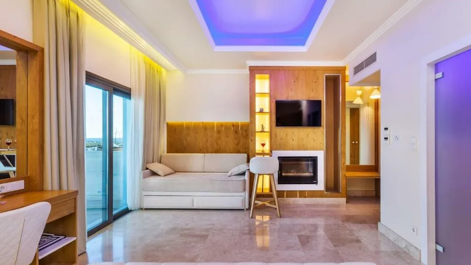 Hotel raspolaže sa svega 16 smeštajnih jedinica, što garantuje intimnu i mirnu atmosferu. Gostima su na raspolaganju moderno uređene dvokrevetne sobe sa pogledom na grad ili more, kao i prostrani apartmani sa pogledom na marinu. Sobe su površine oko 25 m², dok apartmani dostižu oko 40 m², sa mogućnošću boravka do 4 osobe, što ih čini pogodnim i za porodice sa decom. Jedna soba je posebno prilagođena osobama sa otežanim kretanjem, sa olakšanim pristupom i prilagođenim kupatilom. Sve jedinice imaju balkon, klima-uređaj, sef, mini bar, televizor sa satelitskim kanalima, kao i besplatan bežični internet. ([portomarinehotel.gr](https://portomarinehotel.gr/stay/?utm_source=openai))