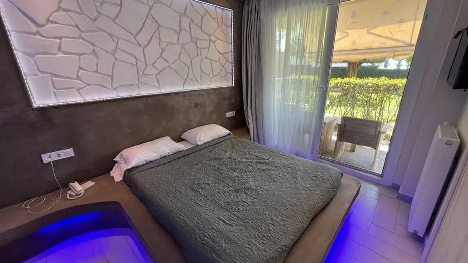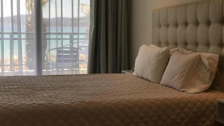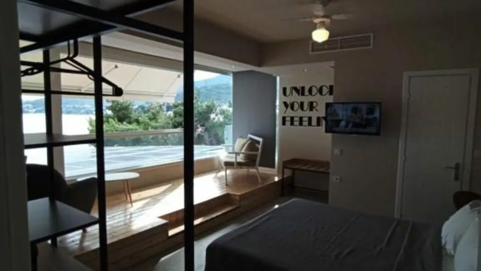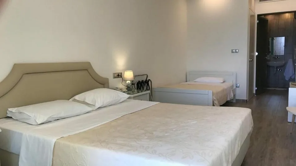 Hotel raspolaže modernim, renoviranim sobama različitih tipova: dvokrevetne i trokrevetne sobe sa pogledom na more, komfornije superior i deluxe jedinice sa balkonom, kao i porodične sobe i veće apartmane sa pogledom na Egej. Ukupno je oko 30–35 soba, što obezbeđuje intimniju i mirniju atmosferu u odnosu na velike komplekse. Sve smeštajne jedinice imaju klima-uređaj, frižider, televizor sa satelitskim kanalima, kupatilo sa fenom za kosu, kao i balkon ili prozor sa pogledom na more ili planinu, uz bežični internet.