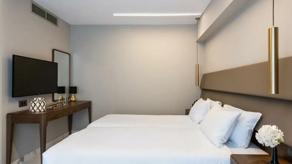 Hotel nudi moderan izbor smeštajnih jedinica, od udobnih standardnih soba do luksuznih apartmana sa privatnim bazenima. Standardne sobe su namenjene za boravak do 3 osobe, dok prostraniji apartmani mogu ugostiti veće društvo ili porodice, do 4 ili čak 6 osoba, u zavisnosti od tipa. U svim jedinicama gosti imaju klima-uređaj, bežični internet, sef i balkon ili terasu, a deo smeštaja pruža predivan pogled na more ili negovane baštenske površine. Zahvaljujući pažljivo odabranim materijalima i svetlim tonovima, enterijer odiše minimalističkom elegancijom, stvarajući osećaj privatnog mediteranskog utočišta.