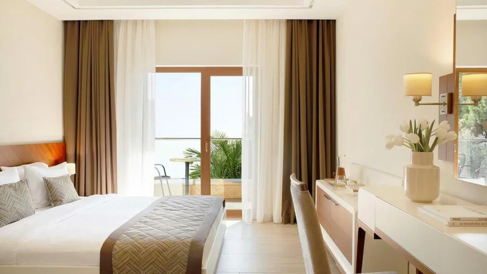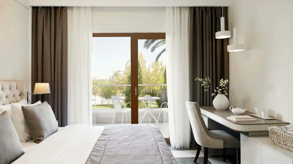 Hotel raspolaže sa oko 230 smeštajnih jedinica, raspoređenih u više zgrada okruženih negovanim vrtovima. Gostima su na raspolaganju standardne i porodične sobe, kao i veći apartmani za zahtevnije putnike ili brojnije porodice, kapaciteta do 4–5 osoba. Sve sobe su moderno uređene u svetlim tonovima, klimatizovane, sa balkonom ili terasom, mini-barom, televizorom i sopstvenim kupatilom. Deo jedinica nudi bočni ili direktan pogled na more, dok druge gledaju na baštu ili bazen, pa gosti mogu da biraju ambijent prema svojim željama i budžetu.