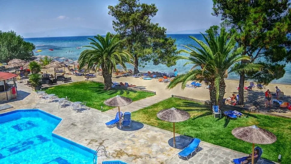 Hotel Rachoni Bay sa kategorijom 3 zvezdice nalazi se u mirnom letovalištu Skala Rahoni, na severozapadnoj obali Tasosa, u Grčkoj. Smešten je neposredno uz peščanu plažu sa postepenim ulaskom u more, idealnu za decu i neplivače, sa prirodnim hladom borova i maslina. Gosti uživaju u direktnom izlazu na uređenu plažu sa ležaljkama i suncobranima, dok se centar Skala Rahonija sa tavernama i prodavnicama nalazi na oko 300 m od hotela. Luka Prinos je na nekoliko minuta vožnje, a glavni grad Limenas na oko dvadesetak minuta automobilom, što omogućava lako istraživanje ostrva.