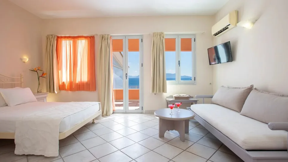 Hotel raspolaže različitim tipovima soba i apartmana, prilagođenim parovima, porodicama i manjim društvima. U ponudi su standardne i superior dvokrevetne sobe, kao i porodični apartmani i veći apartmani sa jednom ili dve spavaće sobe, sa pogledom na more ili vrt. Većina soba može da ugosti do 2–3 osobe, dok porodični apartmani primaju do 4 osobe, što ih čini pogodnim za smeštaj roditelja sa decom. Sve jedinice su komforne, klimatizovane, sa balkonom ili terasom, frižiderom ili mini barom, sefom i televizorom, uređene u toplim mediteranskim tonovima.