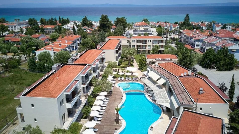 Renaissance Hanioti Resort je elegantan hotelski kompleks sa 4 zvezdice, smešten u mirnom delu letovališta Hanioti, na Halkidikiju, u Grčkoj. Nalazi se na svega oko 50 m od peščane plaže sa kristalno čistim morem i približno 150 m od živopisnog centra Haniotija, gde se nalaze taverne, kafei i prodavnice. Zahvaljujući odličnoj poziciji, gostima pruža savršen balans između opuštajućeg odmora i blizine svih sadržaja, dok je aerodrom u Solunu na udaljenosti od oko sat i po vožnje, što ovo letovalište čini lako dostupnim za porodična i individualna putovanja. ([renaissance-hanioti.gr](https://renaissance-hanioti.gr/the-resort/?utm_source=openai))
