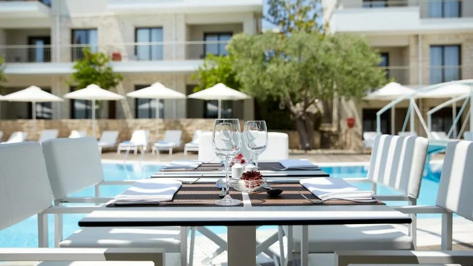 Renaissance Hanioti Resort nudi veliki otvoreni bazen sa odvojenim dečjim bazenom, okružen udobnim ležaljkama i suncobranima, koje gosti mogu koristiti bez doplate oko bazena. Na raspolaganju je restoran sa bogatim doručkom i večerom, kao i a la kart restoran sa jelovnikom inspirisanim mediteranskom i lokalnom kuhinjom. Gostima je na usluzi bar pored bazena sa osvežavajućim pićima i laganim zalogajima tokom dana. U okviru hotela nalazi se moderan spa centar sa saunom, parnim kupatilom, đakuzijem i tretmanima za telo i lice, a dostupni su i fitnes sadržaji, usluge lekara, menjačnica, bankomat, iznajmljivanje automobila, recepcija koja radi 24 sata i ležaljke i suncobrani na plaži uz doplatu. ([renaissance-hanioti.gr](https://renaissance-hanioti.gr/the-resort/?utm_source=openai))