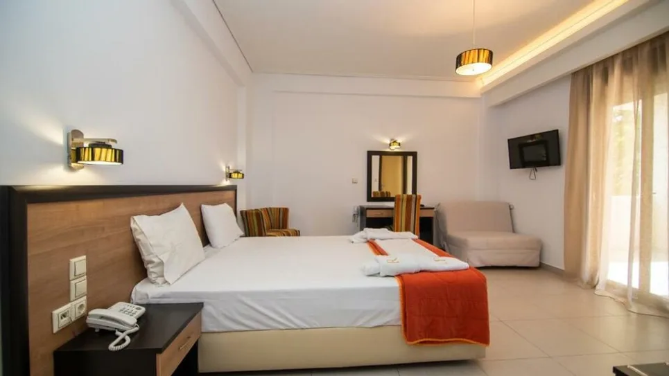 Smeštaj u hotelu organizovan je u udobnim i funkcionalno opremljenim sobama, raspoređenim u niskoj zgradi prizemnog tipa, što dodatno doprinosi osećaju mira i privatnosti. Hotel raspolaže sa oko 20 soba, namenjenih boravku 2–3 osobe, sa mogućnošću dodatnog ležaja za dete u pojedinim jedinicama. Sve sobe su klimatizovane, imaju sopstveno kupatilo, balkon ili terasu, televizor i bežični internet, a deo soba nudi i lep bočni ili direktan pogled na more. Uređenje je jednostavno, ali prijatno, sa toplim bojama i naglaskom na čistoći i komforu.