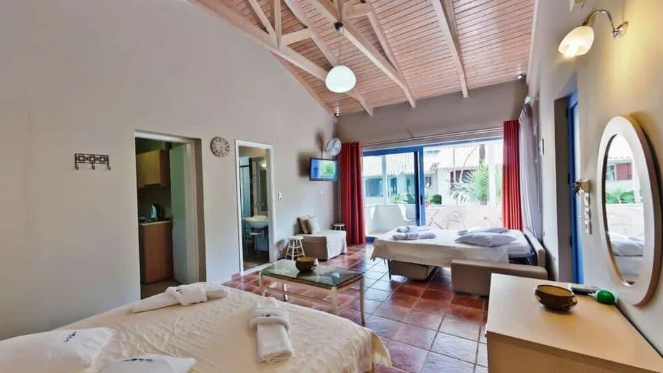 Atmosfera hotela je opuštena i porodična, sa naglašenim mediteranskim šarmom, tropskim biljem i palmama koje okružuju objekat. Stil je jednostavan, funkcionalan i topao, sa naglaskom na prirodno okruženje i blizinu mora. Zahvaljujući mirnoj lokaciji, peskovito-šljunkovitoj plaži i sigurnom okruženju, hotel je odličan izbor za porodice sa decom, ali i za parove koji traže romantičan odmor uz more, kao i za putnike koji žele mirnu bazu za istraživanje Lefkade i obližnjih jonskih ostrva.