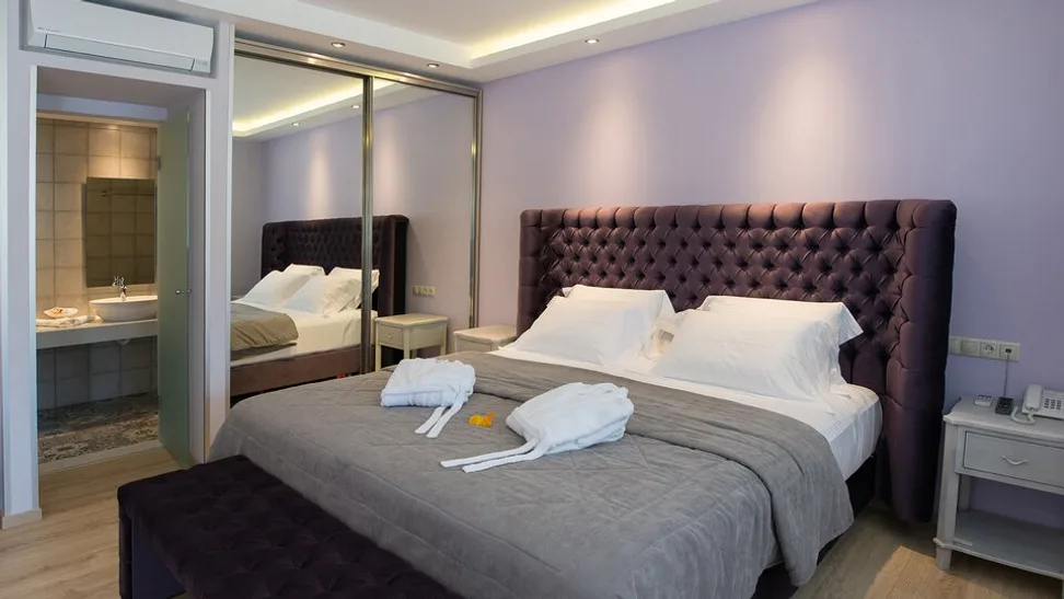 Hotel raspolaže sa ukupno oko 24 smeštajne jedinice, što obezbeđuje intimnu i mirnu atmosferu. Gosti mogu birati moderno uređene deluxe sobe sa pogledom na more, elegantne apartmane Penelope i Nafsika, kao i prostranije porodične sobe i porodične apartmane sa odvojenim prostorijama, idealne za višečlane porodice. Posebnu kategoriju čini luksuzni veći apartman sa privatnim bazenom, kao i porodični apartman sa spoljašnjim đakuzijem, za one koji žele dodatnu privatnost i komfor. Sve jedinice imaju balkon ili terasu sa direktnim ili bočnim pogledom na Jonsko more, klima-uređaj, sef, mini-bar i besplatan bežični internet. ([sannicolas.gr](https://sannicolas.gr/?utm_source=openai))