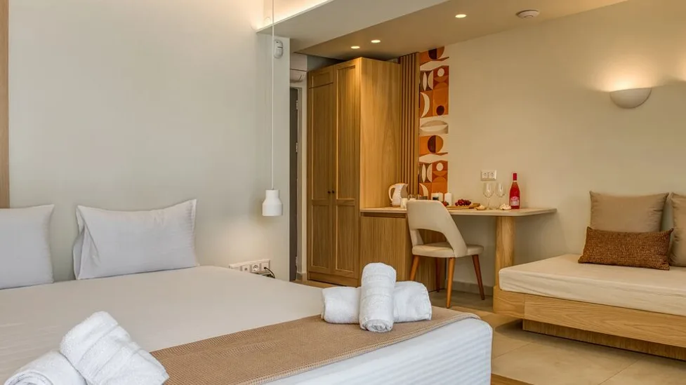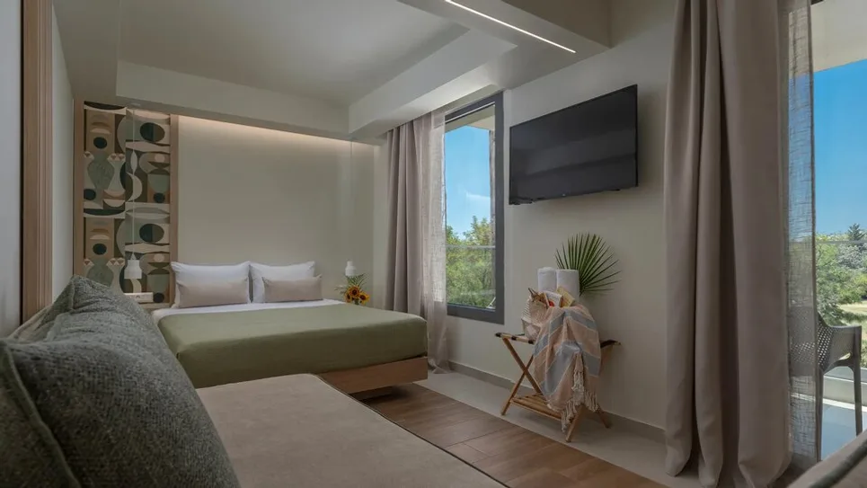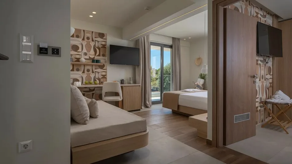 Atmosfera hotela je ležerna, savremena i porodična, sa naglaskom na gostoljubivosti i ličnom pristupu. Uređenje je u mediteranskom stilu, sa svetlim bojama i detaljima koji prizivaju more, što stvara prijatan ambijent za odmor. Sandy Seaside Suites je odličan izbor za parove koji traže miran odmor blizu plaže, porodice sa decom kojima su važni bazen i prostraniji apartmani, ali i za goste koji žele praktičnu bazu za obilazak plaža na Halkidikiju i izlete u okolinu.