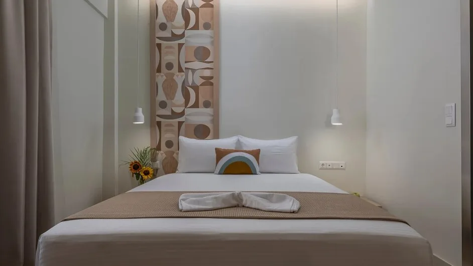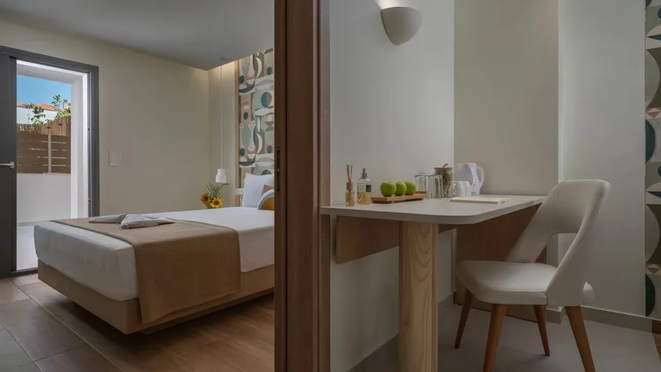 Objekat raspolaže sa ukupno 19 apartmana, raspoređenih u nekoliko tipova smeštaja: standardne sobe, komforne sobe sa pogledom na more, elegantne i premium apartmane, kao i jedinice u prizemlju pogodne za porodice sa manjom decom. Većina smeštajnih jedinica predviđena je za 2 odrasle osobe i 1 dete, sa mogućnošću dodavanja krevetca za najmlađe. Sobe su moderno uređene, sa naglaskom na udobnost, funkcionalan prostor i svetle tonove, a opremljene su klima-uređajem, mini kuhinjom ili čajnom kuhinjom, sopstvenim kupatilom, terasom ili balkonom.