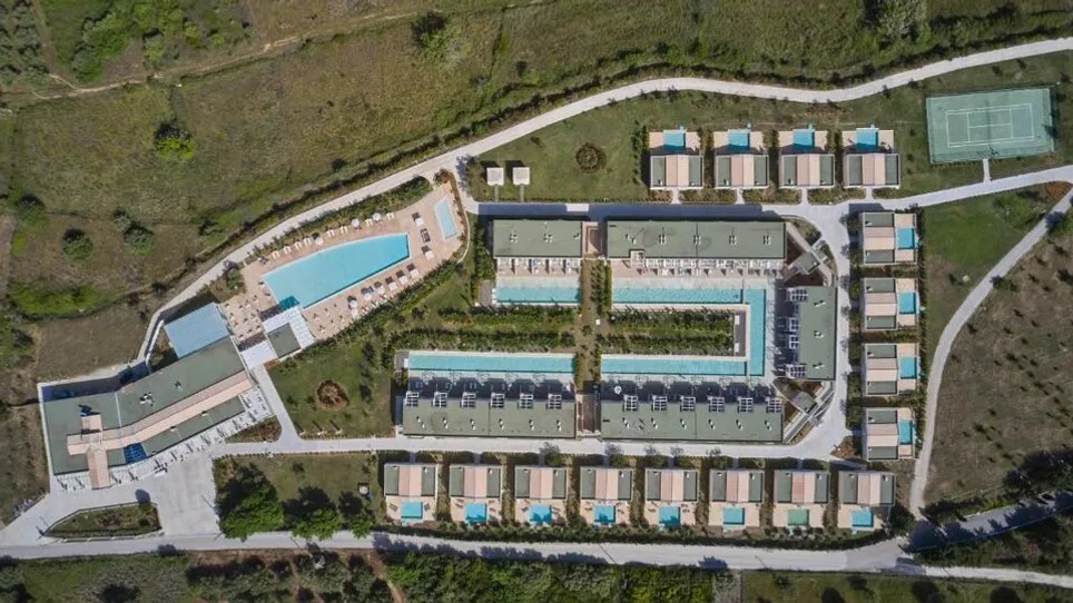 Hotel nudi bogat izbor sadržaja i usluga, u okviru koncepta sve uključeno. Na raspolaganju su glavni i a la kart restoran, više barova, uključujući bar pored bazena, kao i ležaljke i suncobrani na plaži. Gostima su namenjena čak četiri spoljašnja bazena različite atmosfere, dečji bazen, dečje igralište i animacija za najmlađe. Tu su i spa centar sa tretmanima za telo i lice, teren za odbojku na pesku, dnevna animacija, mogućnost iznajmljivanja automobila, bankomat, konferencijska sala za poslovne događaje, kao i lekar na poziv. ([sandy-villas-resort.gr](https://www.sandy-villas-resort.gr/?utm_source=openai))