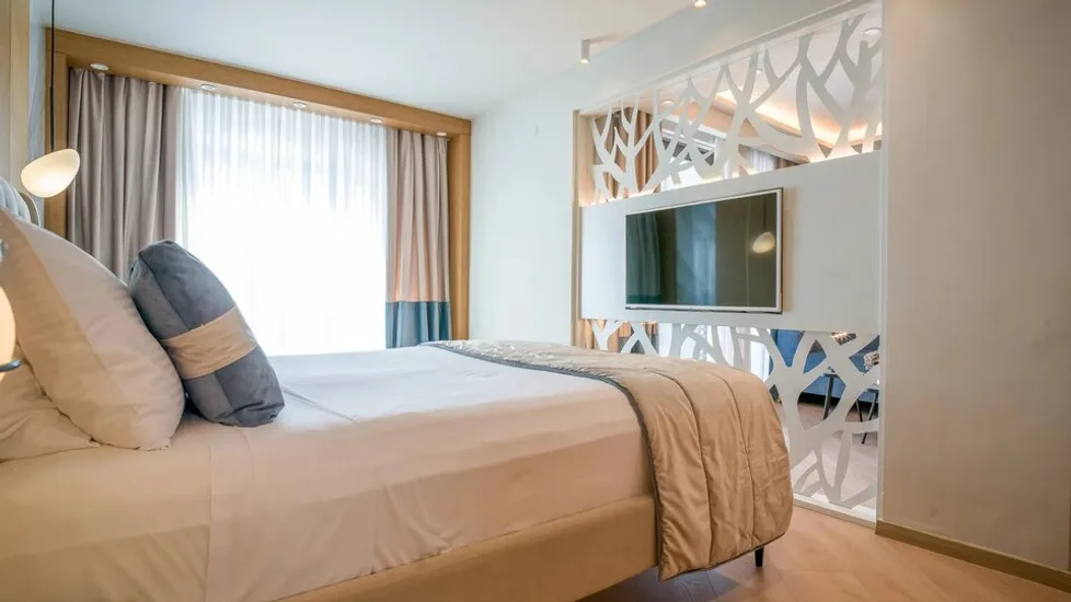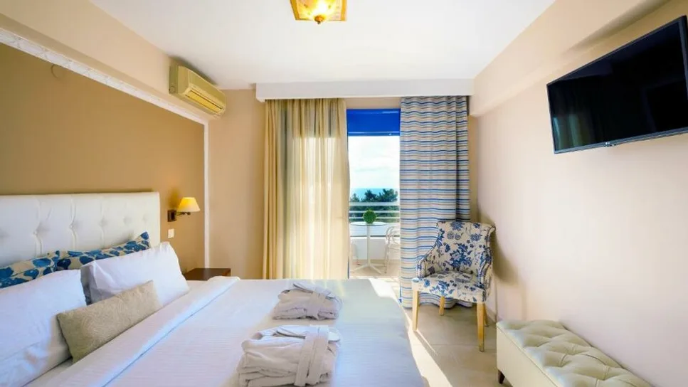 Hotel raspolaže sa oko 40 komfornih soba, uređenih u savremenom stilu, pogodnih za smeštaj od jedne do četiri osobe. Gostima su na raspolaganju standardne dvokrevetne sobe sa pogledom na planinu ili more, trokrevetne sobe, kao i porodične sobe sa većom kvadraturom, idealne za roditelje sa decom. Sve smeštajne jedinice imaju klima-uređaj, balkon, televizor, mini-bar, sef, kupatilo sa tuš kabinom ili tuš zavesom, kao i svakodnevno održavanje higijene, uz redovnu zamenu peškira i posteljine.