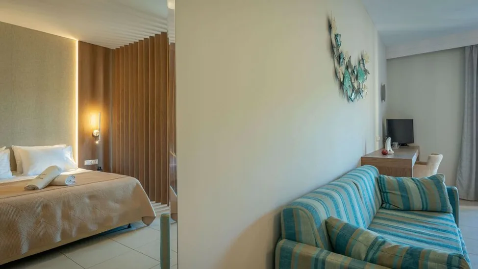 Smeštajne jedinice su uređene u jednostavnom, prijatnom mediteranskom stilu, sa toplim bojama i funkcionalnim rasporedom. Hotel nudi različite tipove soba, od standardnih dvokrevetnih do porodičnih soba i apartmana, prilagođenih parovima, porodicama sa decom ili manjim društvima. Većina soba raspolaže balkonom, klima-uređajem, televizorom, frižiderom i kupatilom sa tušem, a pojedine jedinice pružaju pogled na more ili zeleni hotelski vrt, stvarajući osećaj opuštajuće letnje rezidencije u Grčkoj.