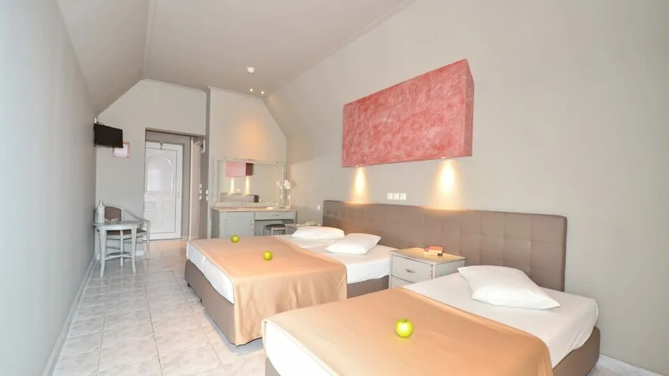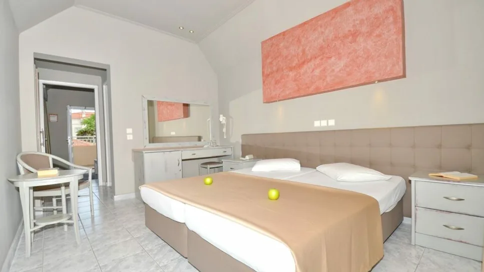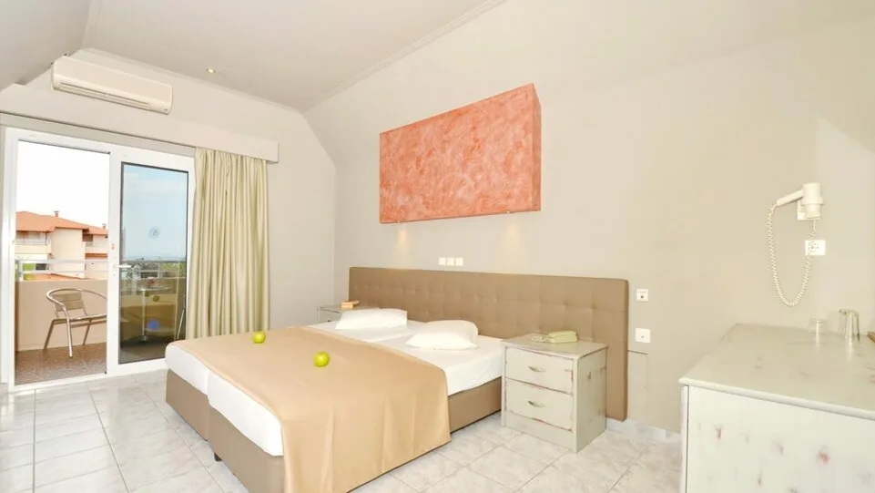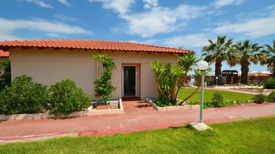 Smeštaj u hotelu čine standardne dvokrevetne i trokrevetne sobe, porodične sobe i bungalovi, ukupno oko 77 soba i bungalova. Sve jedinice su renovirane u mediteranskom stilu, svetlih boja, sa balkonom ili terasom okrenutim ka vrtu ili moru. Sobe su predviđene za boravak od 2 do 4 osobe, opremljene klimom (uz doplatu), televizorom sa satelitskim kanalima, mini frižiderom, fenom za kosu, telefonom i sefom (uz doplatu), što obezbeđuje udoban boravak i dužim letnjim odmorima.