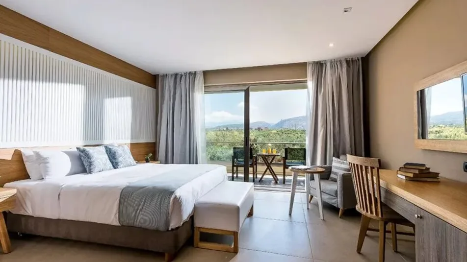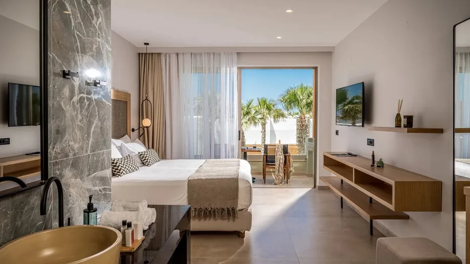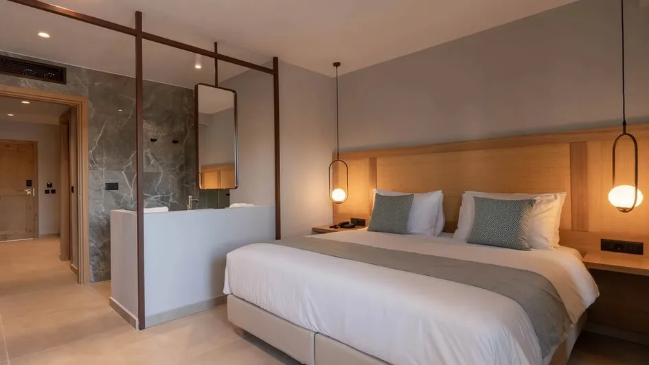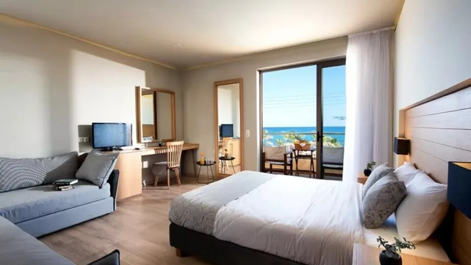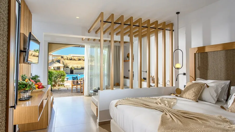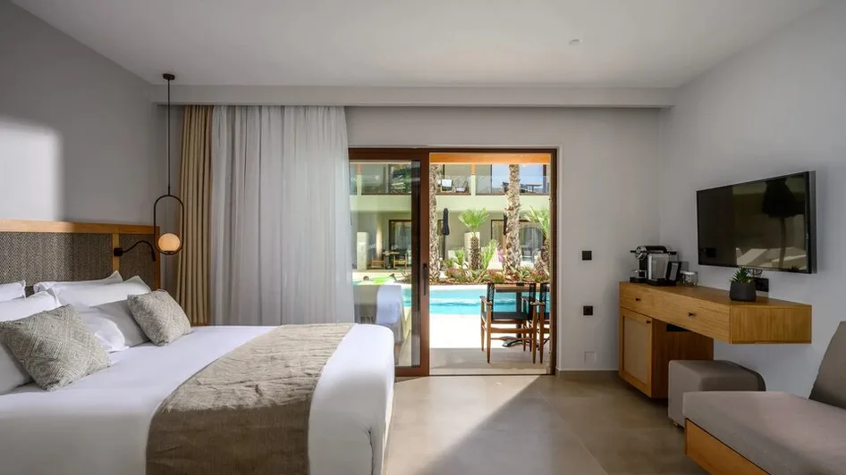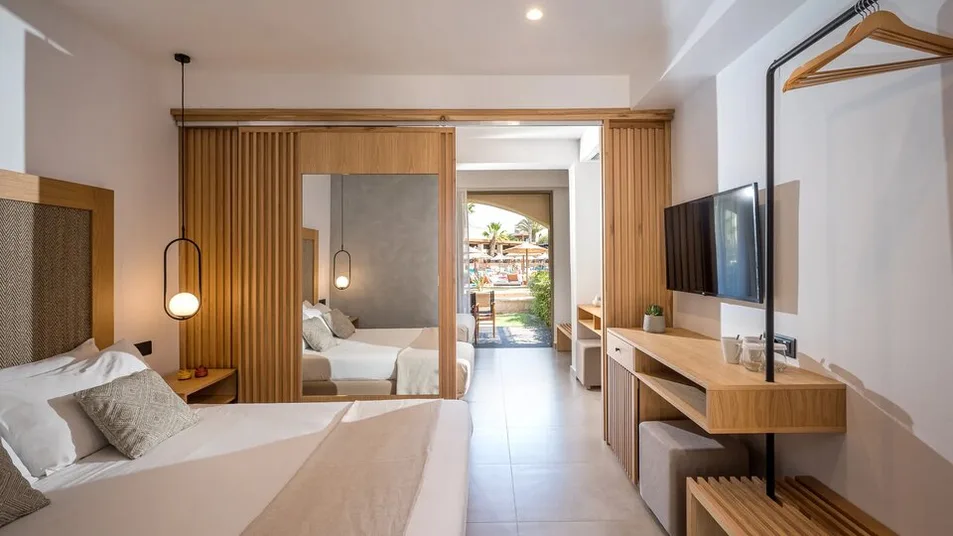 Hotel raspolaže različitim tipovima smeštaja, od standardnih dvokrevetnih soba do prostranih porodičnih jedinica i apartmana sa direktnim pristupom zajedničkom bazenu ili sopstvenim privatnim bazenom. Ukupno nudi oko 250–360 smeštajnih jedinica, moderno uređenih u toplim, zemljanim tonovima. Sve sobe imaju klima-uređaj, televizor sa satelitskim kanalima, frižider, balkon ili terasu sa pogledom na vrt, bazen ili more. Porodične sobe i veći apartmani idealni su za smeštaj roditelja sa decom, dok apartmani sa privatnim bazenom pružaju dodatnu dozu luksuza i privatnosti.