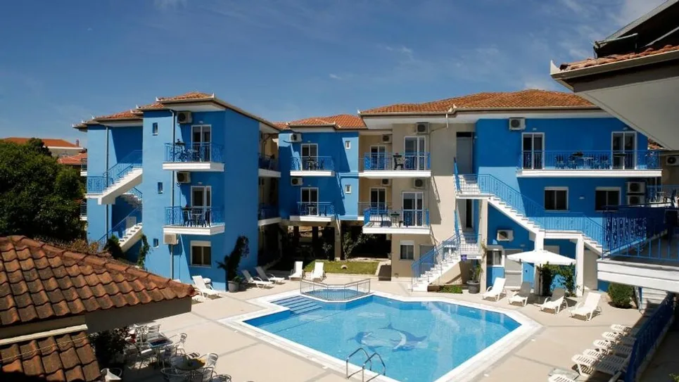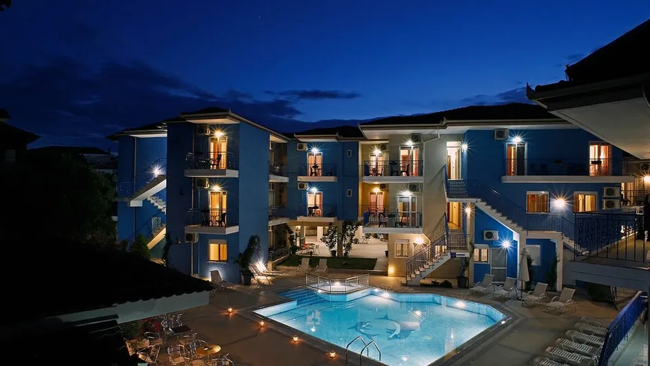 Hotel svojim gostima nudi lepo uređeno dvorište sa spoljnim bazenom i izdvojenim dečjim bazenom, okruženim ležaljkama i suncobranima za opuštanje tokom dana. Pored bazena se nalazi bar u kojem se služe osvežavajuća pića, kokteli i lagani obroci, dok hotelski restoran nudi obroke domaće i međunarodne kuhinje. U zajedničkim prostorijama i sobama dostupan je bežični internet, a u okviru objekta nalaze se i bankomat, mogućnost iznajmljivanja automobila, dečje igralište, kao i usluge lekara na poziv. ([stratoshotel.gr](https://www.stratoshotel.gr/accommodation/family-suites/?utm_source=openai))